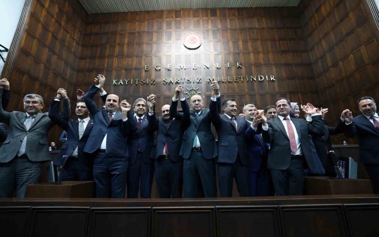 Toplantı sonunda partisinin yeni katılımlarını da duyuran Cumhurbaşkanı Erdoğan, CHP’li Antalya Aksu Belediye Başkanı İsa Yıldırım ile Yeniden Refah Partisi’nden Konya Sarayönü Belediye Başkanı Necati Koç’a rozetlerini takarak, birliklerini pekiştirdi.