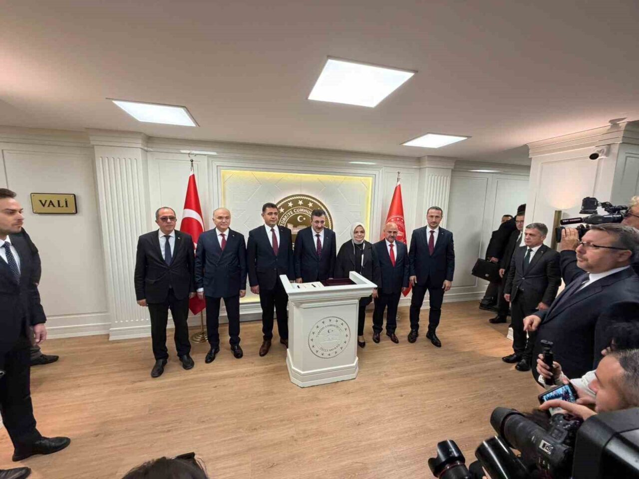 CUMHURBAŞKANI YARDIMCISI CEVDET YILMAZ, İLK OLARAK DÜZCE VALİLİĞİ’Nİ ZİYARET EDEREK VALİLİK ŞEREF DEFTERİNİ İMZALADI.