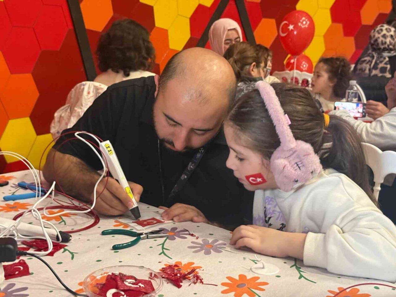Etkinlikte 4-10 yaş grubundaki çocuklar için özel olarak tasarlanan çeşitli atölye çalışmaları gerçekleştirildi. 3D kalemle Türk bayrağı yapımı, “Cumhuriyet Emin Ellerde” hatıra panosu oluşturma ve yüz boyama gibi aktiviteler çocukların büyük ilgisini çekti. Renkli görüntüler eşliğinde süren program, katılan çocuklar için hem öğretici hem de eğlenceli anlarla dolu bir gün sunarak Cumhuriyet bilincinin pekişmesine katkı sağladı.