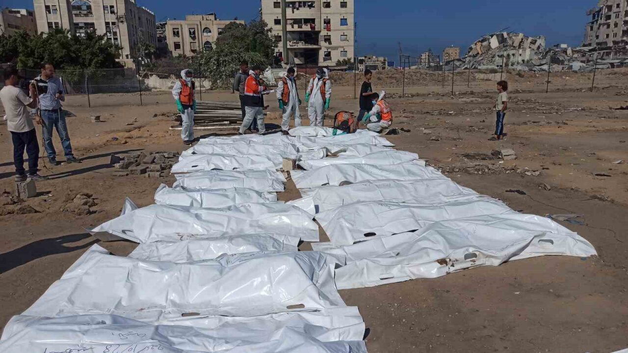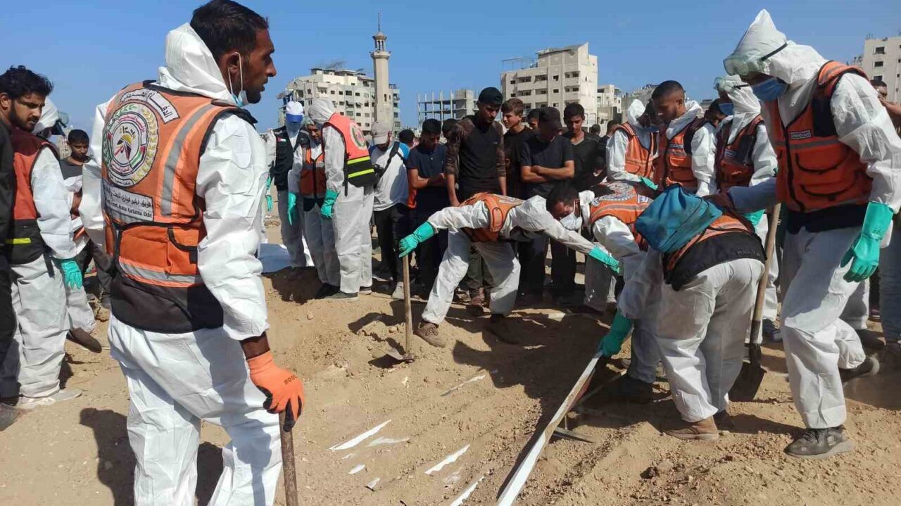 GAZZE’DE SALDIRILAR NEDENİYLE TOPLU ŞEKİLDE DEFNEDİLEN CENAZELER KİMLİK TESPİTİ İÇİN MEZARDAN ÇIKARILDI