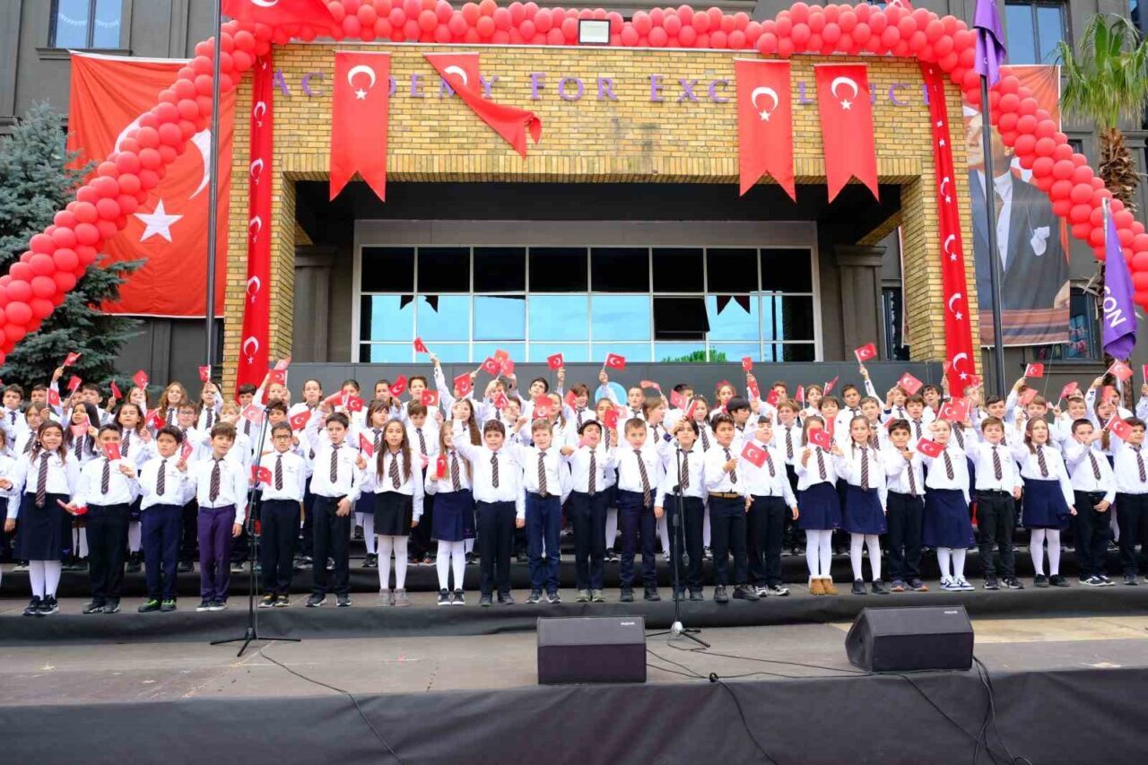 Cumhuriyet coşkusu yalnızca sahnede değil, tüm kampüs alanında da hissedildi. Anaokulu, ilkokul ve ortaokul öğrencilerinin bando eşliğinde gerçekleştirdiği Cumhuriyet Korteji, hem kampüsü hem de çevre sokakları renklendirdi. Etkinlik sonrasında Merkez Kampüs’teki törende öğrencilerin marşlar seslendirdiği ve zeybek dansı yaptığı anlar, izleyicileri büyüledi.