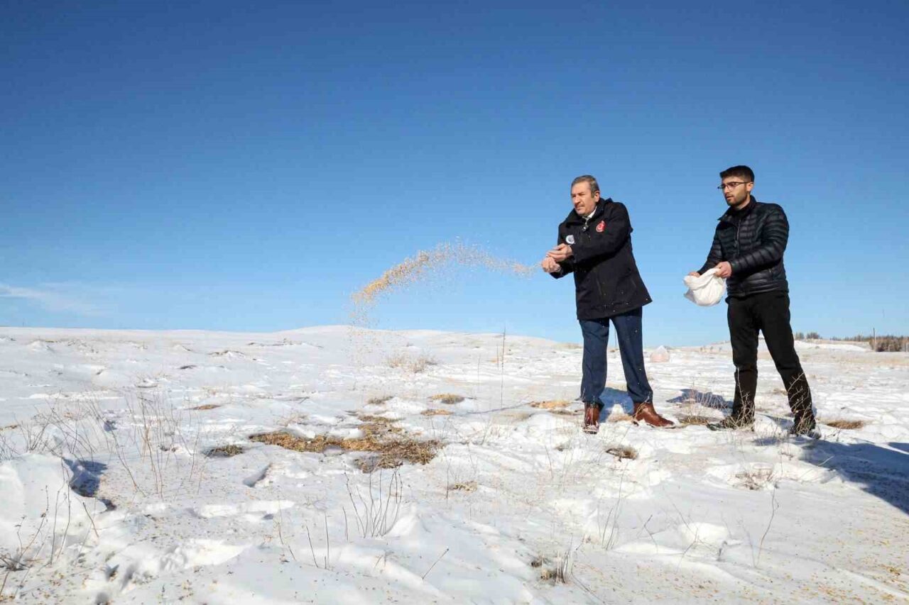 Kar yağışının ilçede yaban hayvanlarının yiyecek bulmasını zorlaştırdığını ifade eden Başkan Bozkurt, merhamet ve paylaşma kültürünün önemine dikkat çekerek, “Dağlara buğdaylar serpin, ‘Müslüman ülkede kuşlar aç kaldı’ demesinler. İlçemizde etkili olan kar yağışı doğayı beyaza bürürken yaban hayatı için yaşam şartlarını zorlaştırdı. Bizler, yaratılanı Yaradan’dan ötürü seven, komşusu açken tok yatmayı içine sindiremeyen bir medeniyetin evlatlarıyız” şeklinde konuştu.