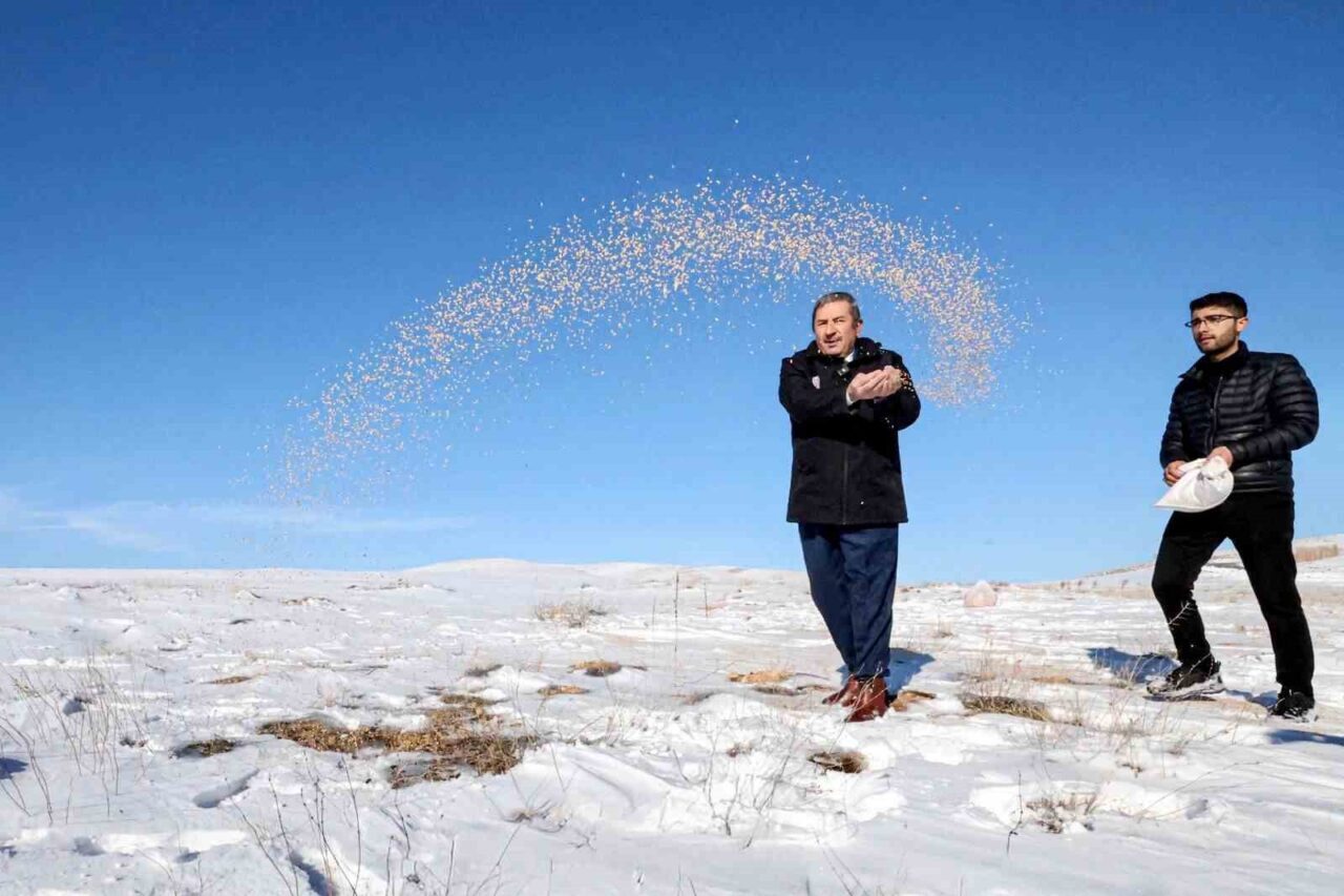 Kar yağışının ilçede yaban hayvanlarının yiyecek bulmasını zorlaştırdığını ifade eden Başkan Bozkurt, merhamet ve paylaşma kültürünün önemine dikkat çekerek, “Dağlara buğdaylar serpin, ‘Müslüman ülkede kuşlar aç kaldı’ demesinler. İlçemizde etkili olan kar yağışı doğayı beyaza bürürken yaban hayatı için yaşam şartlarını zorlaştırdı. Bizler, yaratılanı Yaradan’dan ötürü seven, komşusu açken tok yatmayı içine sindiremeyen bir medeniyetin evlatlarıyız” şeklinde konuştu.