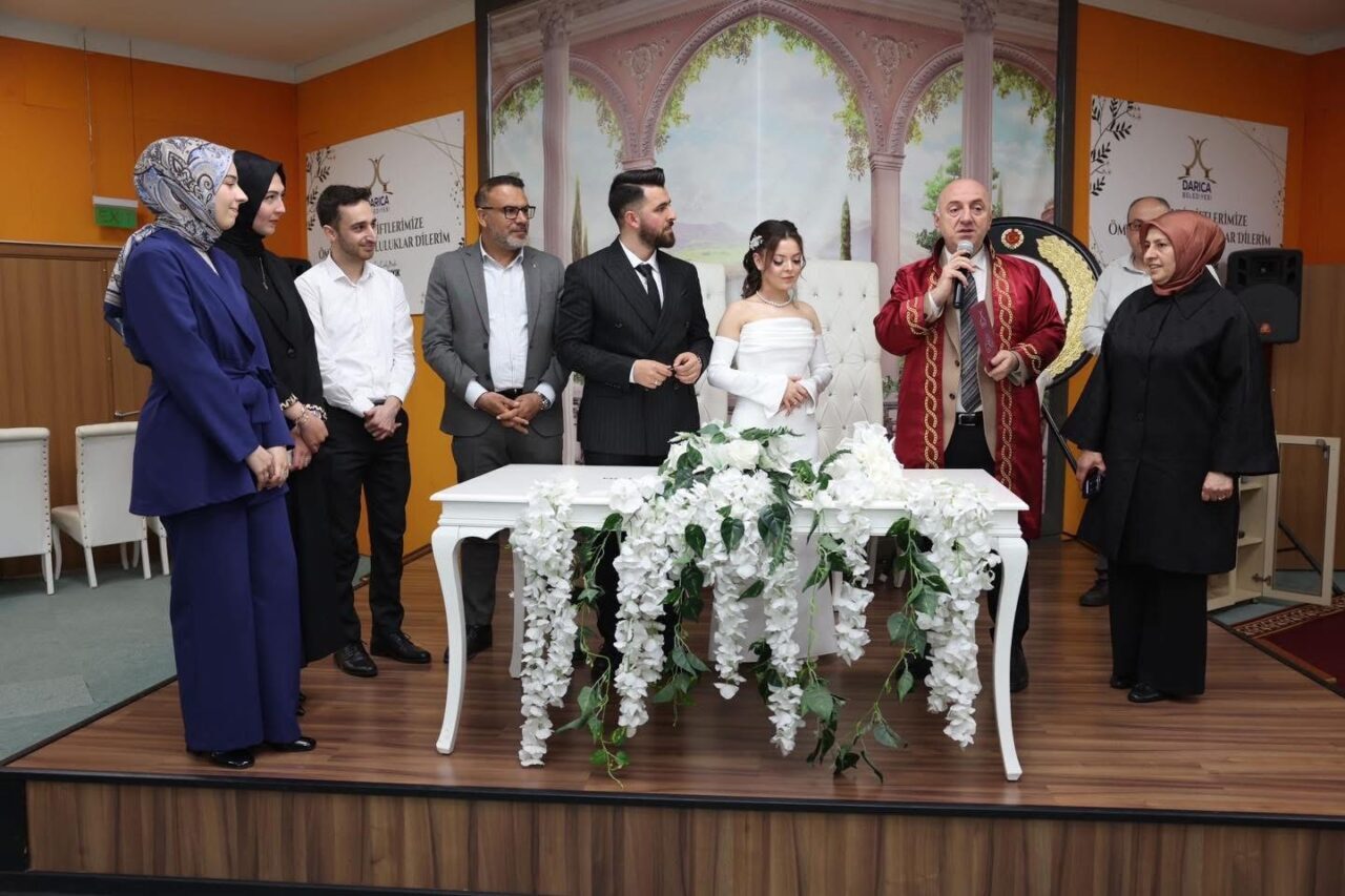 Darıca Belediyesinden yapılan açıklamaya göre, Evlendirme Memurluğuna başvuran çiftlerin nikah akitleri, Adnan Menderes Kültür Merkezi’ndeki salonlarda gerçekleştirildi. Geçtiğimiz yıl toplam bin 475 çiftin dünyaevine girdiği ilçede, nikah törenleri için fotoğraf çekimi ve takı merasimi alanlarının da bulunduğu salonlar hizmet verdi.