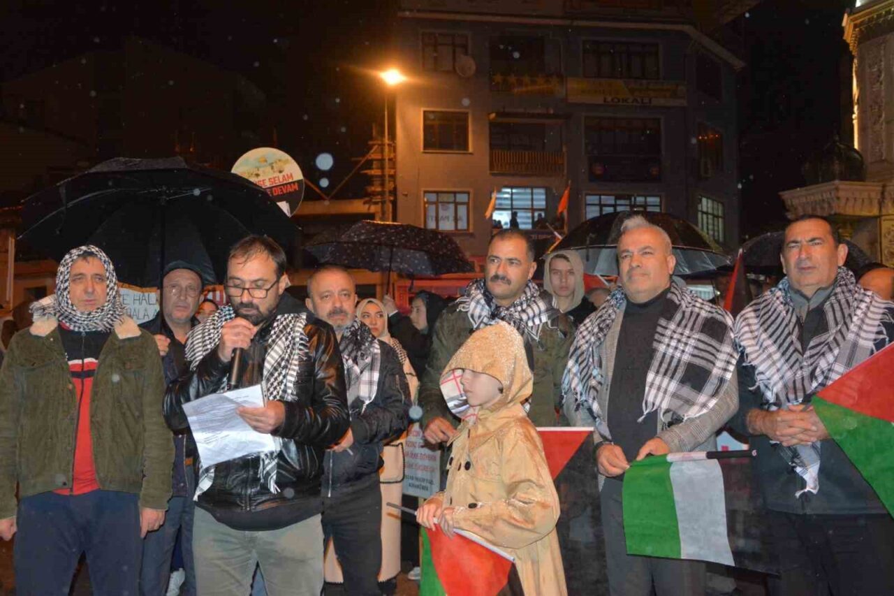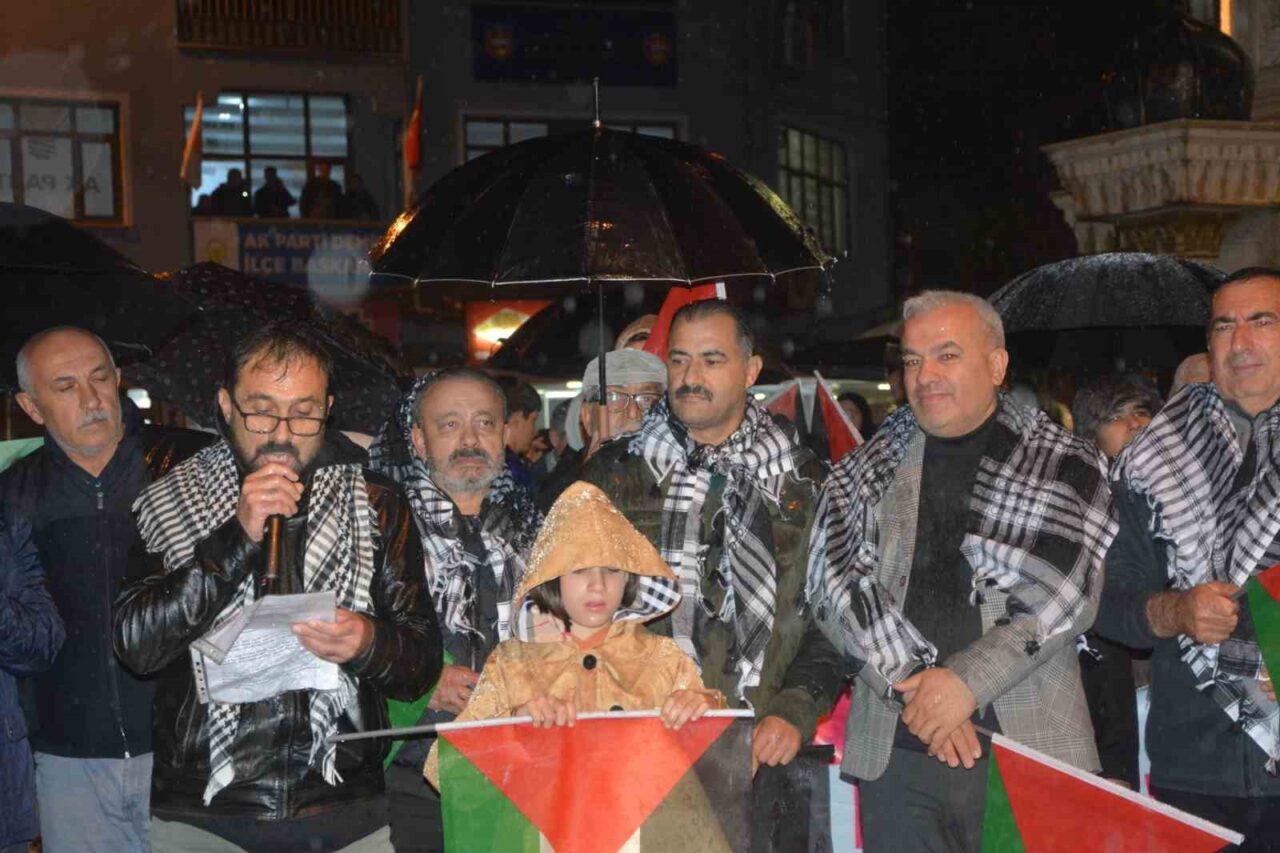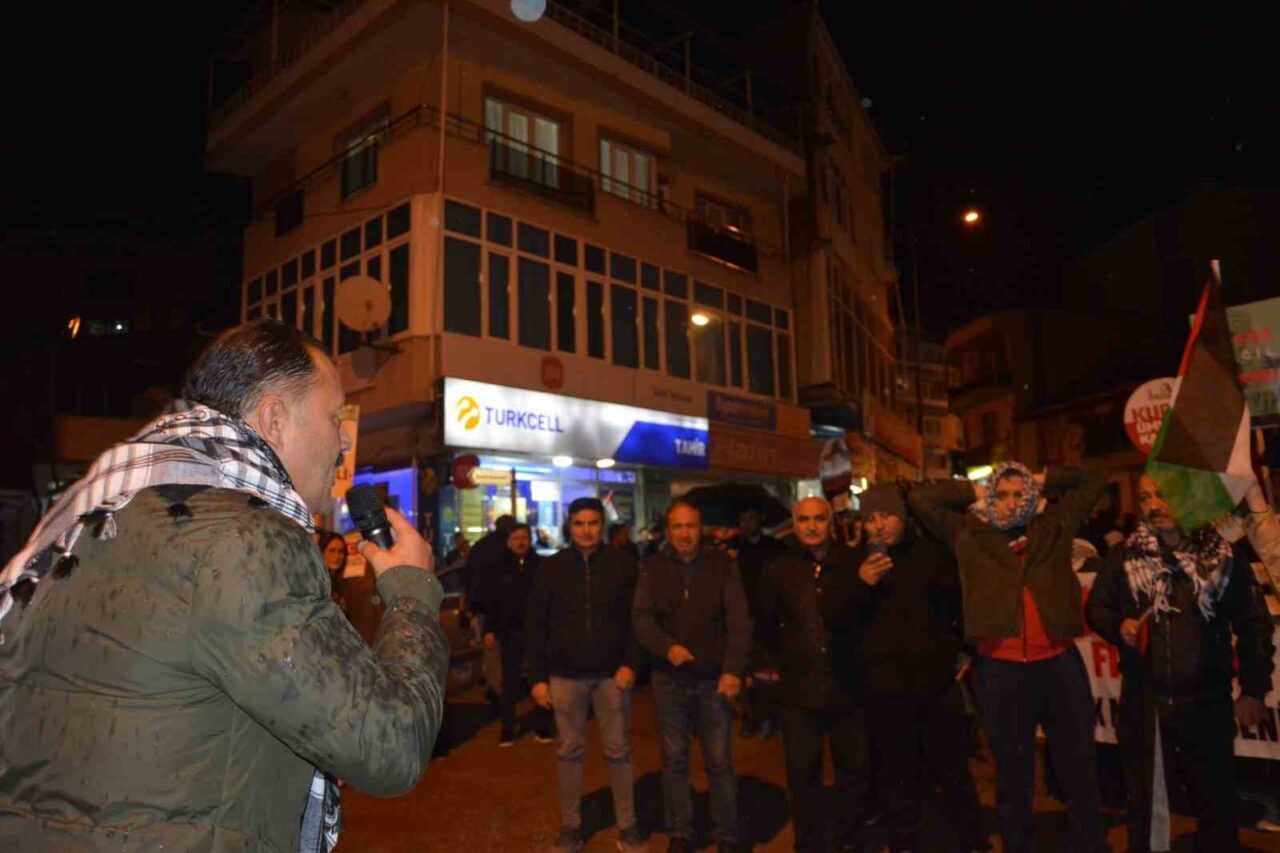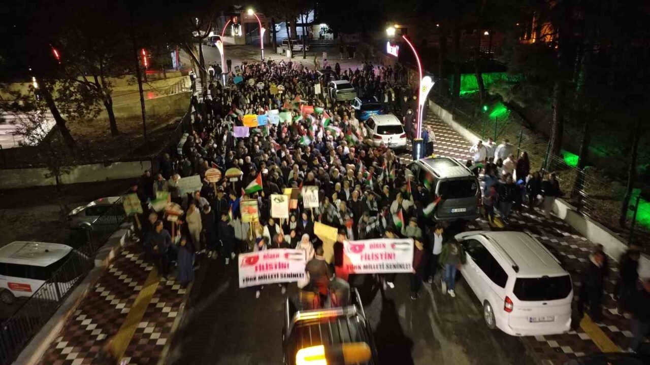 Manisa’nın Demirci ilçesinde, İsrail’in Gazze’ye yönelik saldırılarını protesto eden binlerce kişi yürüyüş düzenledi. Yağmur altında haykıran kalabalık, Filistin bayrakları taşıyarak “Kahrolsun İsrail” sloganları attı. Demirci Belediye Başkanı Erkan Kara, Siyonist İsrail’in saldırılarına karşı durduklarını vurguladı. Öğrenci Nisa Rüveyda Ülker, Gazze’deki çocukların acılarına dikkat çekti.