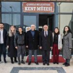 Denizli İl Kültür ve Turizm Müdürü Adem Özel, Şube Müdürü Nihan Daban ve uzman Mine Kasap, Çameli Belediye Başkanı Cengiz Arslan’ı makamında ziyaret etti. Ziyaret kapsamında Çameli ilçesinde incelemelerde bulunan heyet, Hayri Dev Kültür Merkezi ile Çameli Taş Konaklar’ı gezdi. Gerçekleştirilen ziyaret sırasında ilçede yürütülen kültür ve turizm çalışmaları hakkında karşılıklı değerlendirmelerde bulunuldu.