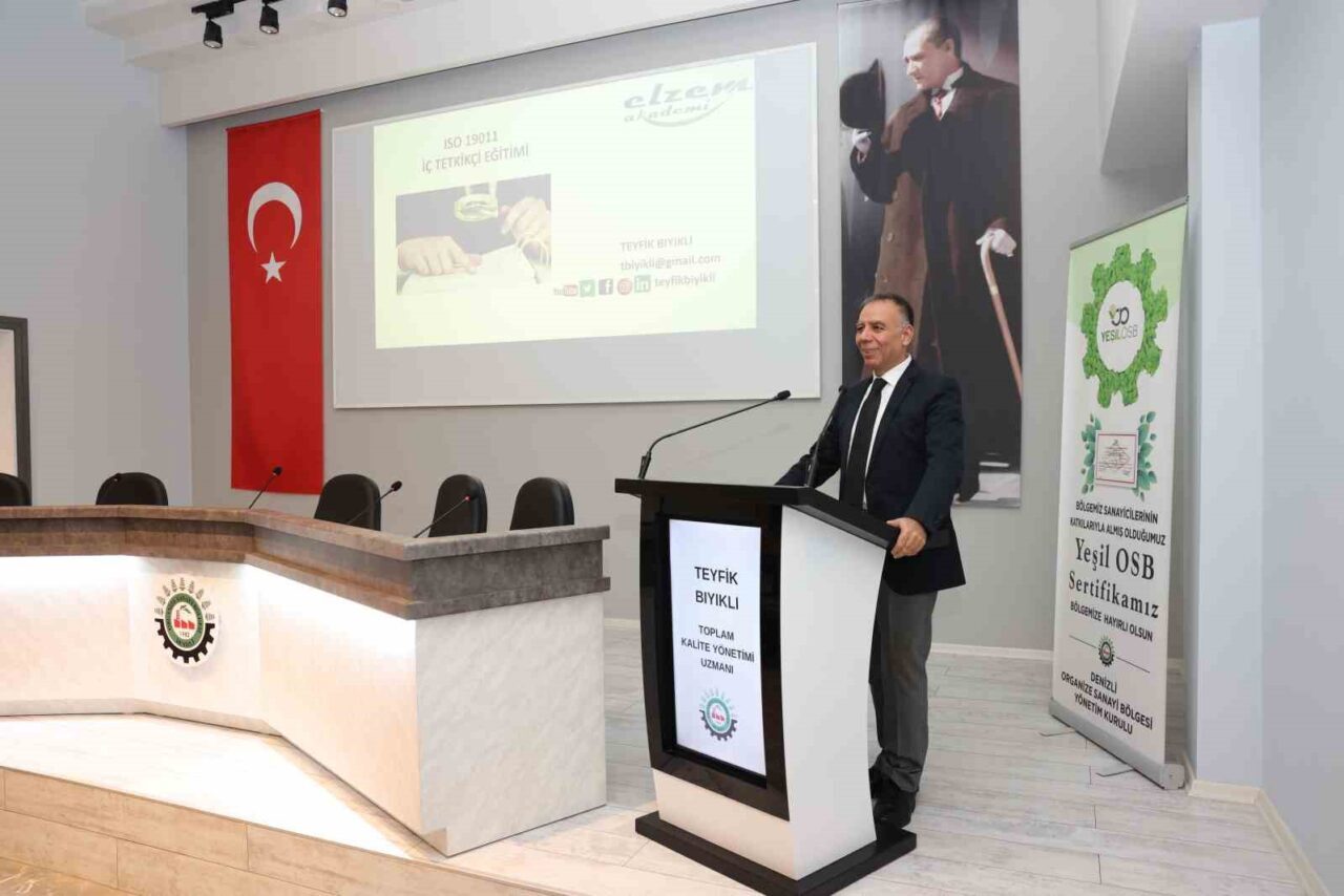 Denizli OSB Müdürlüğü, Elzem Akademi iş birliğiyle ‘İç Tetkikçi’ eğitimi düzenleyerek personeline ISO 19011 standartları hakkında kapsamlı bilgiler sundu. Teyfik Bıyıklı tarafından verilen eğitim, interaktif yöntemlerle zenginleştirildi ve katılımcılar sorularını yöneltme imkanı buldu. Program, hatıra fotoğrafıyla sona erdi.
