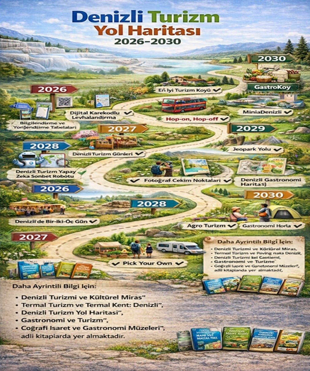 Denizli Turizm Yol Haritası, Prof. Dr. Serkan Bertan’ın öncülüğünde, kamu kurumları, yerel yönetimler, üniversiteler, sivil toplum kuruluşları ve özel sektör arasında ortak bir işbirliği oluşturmayı amaçlıyor. Bu stratejinin hayata geçirilmesi ile Denizli’nin sadece günübirlik bir destinasyon olmaktan çıkıp, konaklama süresi uzun ve yüksek marka değerine sahip bir turizm merkezi haline gelmesi hedefleniyor.