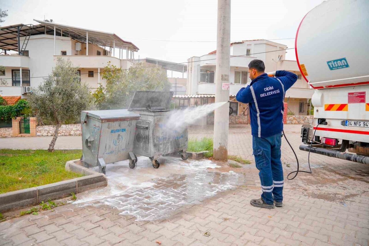 Aydın ili Didim ilçesinde, Didim Belediyesi Temizlik İşleri Müdürlüğü, Akbük Mahallesi’nde temizlik faaliyetlerine devam ediyor.