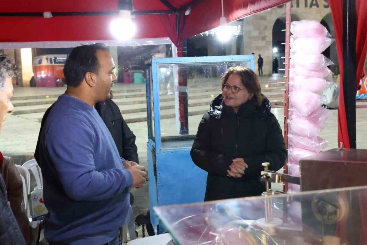 Meydan, ışıkların oyunları ve müziğin enerjisiyle bambaşka bir havaya bürünüyor; her yaştan insan etkinliklere katılarak renklilik ve coşku yaratıyor. Çocukların neşesi, sahne gösterileri, canlı müzik performansları ve çeşitli aktiviteler, Didim’in akşamlarına yoğun bir enerji katıyor. Cumhuriyet Kent Meydanı’ndaki etkinliklere katılan Didim Belediye Başkanı Hatice Gençay, meydanı dolduran halk ile bir araya gelerek sohbet etti. Başkan Gençay, yeni yıl etkinliklerinin şehirde birlik, beraberlik ve dayanışma hissini güçlendirdiğine dikkat çekti. “Yılbaşı kutlamalarımız, kentimize mutluluk, umudun yeniden yeşermesi ve dayanışma duygusunu sunuyor. Her yaş grubundan hemşehrimizle aynı coşkuyu paylaşmak ve meydanı birlikte doldurmak bizim için oldukça değerli,” şeklinde konuştu.