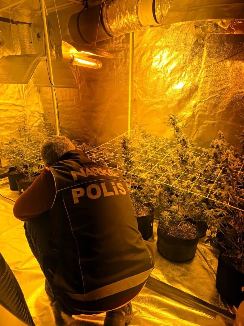 Aydın’ın Didim ilçesinde uyuşturucu madde ticaretinin ve kullanımının önlenmesine yönelik yürütülen çalışmalar kapsamında düzenlenen operasyonda, evde kurulan kenevir yetiştirme sistemi deşifre edildi.