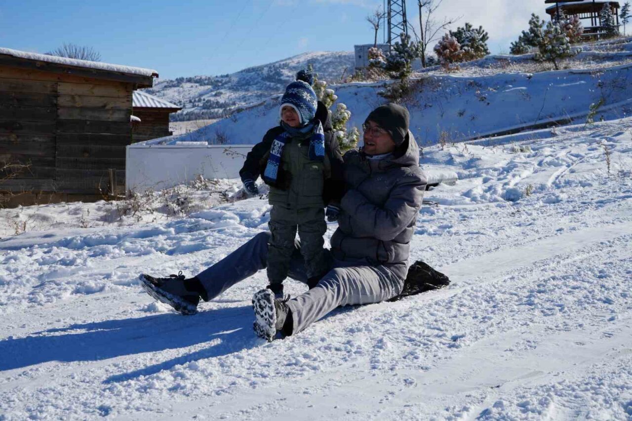 Cüneyt Burak Gönen ise, “Yeni yıl karla birlikte geldi, çok mutluyuz. Bu heyecanı çocuklarımızla paylaşmak için buraya geldik. Kırıkkale’nin en çok kar yağan yerlerinden biri burası. Hep birlikte eğleneceğiz inşallah. Daha fazla kar yağarsa daha da keyifli olur” ifadelerini kullandı.