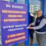 Divriği Belediyesi, ilçede faaliyet gösteren BİM marketi şubesini, son kullanma tarihi geçmiş ürünler sattığı tespit edildiği için bir gün süreyle kapatma kararı aldı.