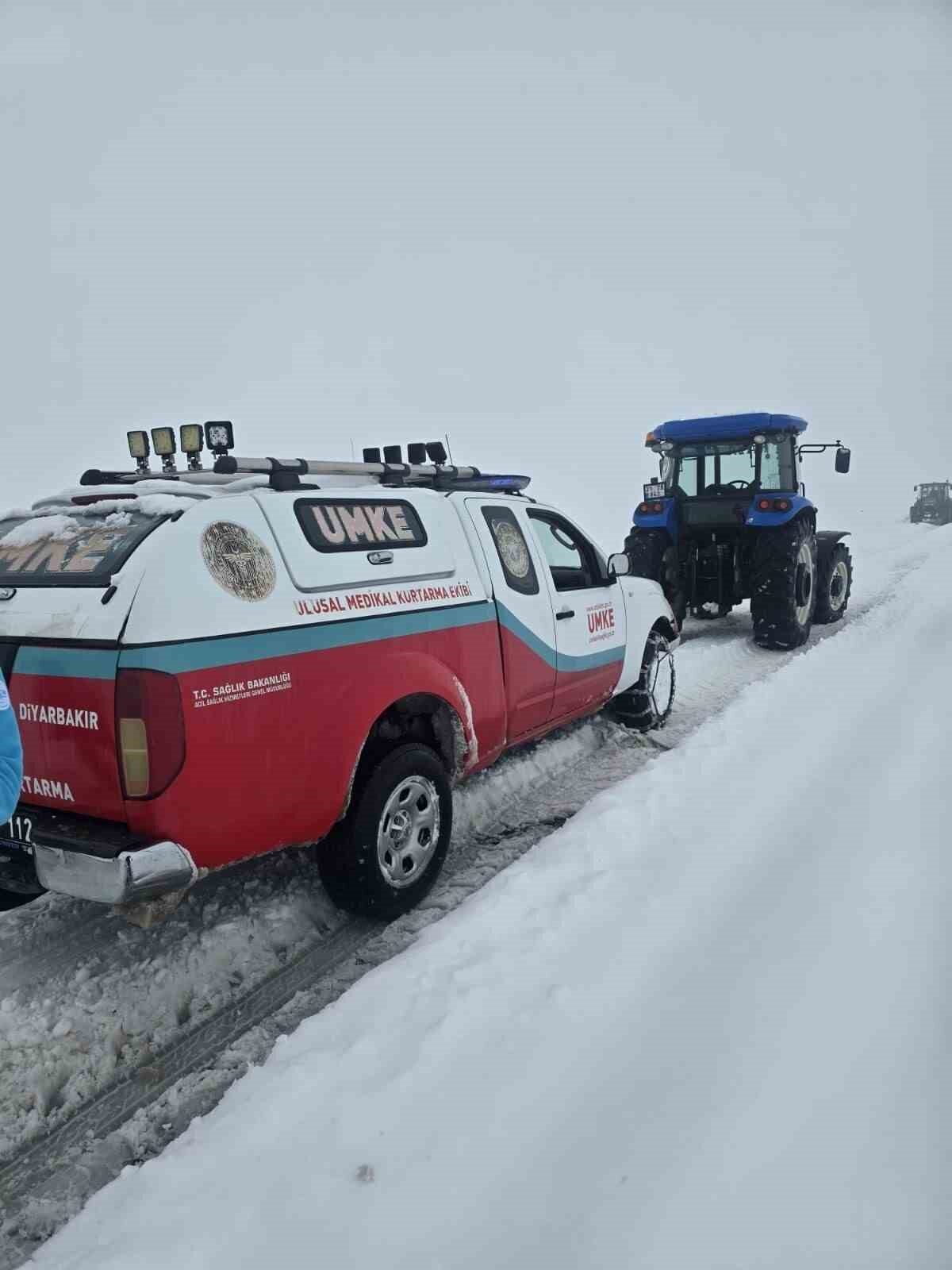 Diyarbakır’da doğum sancısı çeken kadın evde doğum yaptı, anne ve bebek kar nedeniyle kurtarıldı.