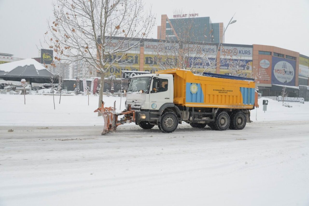 Diyarbakır’da dün akşam saatlerinde başlayan kar yağışı, gece boyunca etkisini sürdürerek kent merkezini beyaza bürüdü. Kar kalınlığı kent merkezinde 25 santimetreyi aşarken, Büyükşehir Belediyesi öncülüğünde oluşturulan Karla Mücadele Koordinasyonu kapsamında, Yol Yapım Bakım ve Onarım Dairesi Başkanlığı, Çevre Koruma ve Kontrol Dairesi Başkanlığı, Park ve Bahçeler Dairesi Başkanlığı, Sağlık İşleri Dairesi Başkanlığı ile Diyarbakır Su ve Kanalizasyon İdaresi (DİSKİ) Genel Müdürlüğü ile Sur, Kayapınar, Bağlar ve Yenişehir belediyelerinden bin 288 personel, dün akşam ekipmanlarıyla çıktıkları sahada karla mücadele çalışmalarını aralıksız sürdürdü.