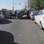 Diyarbakır’ın Bağlar ilçesinde meydana gelen ilginç bir trafik kazasında, kontrolünü kaybeden bir otomobil, park halindeki iki aracın üzerine çıktı. Bu olay çevredeki vatandaşları şaşkına uğrattı.