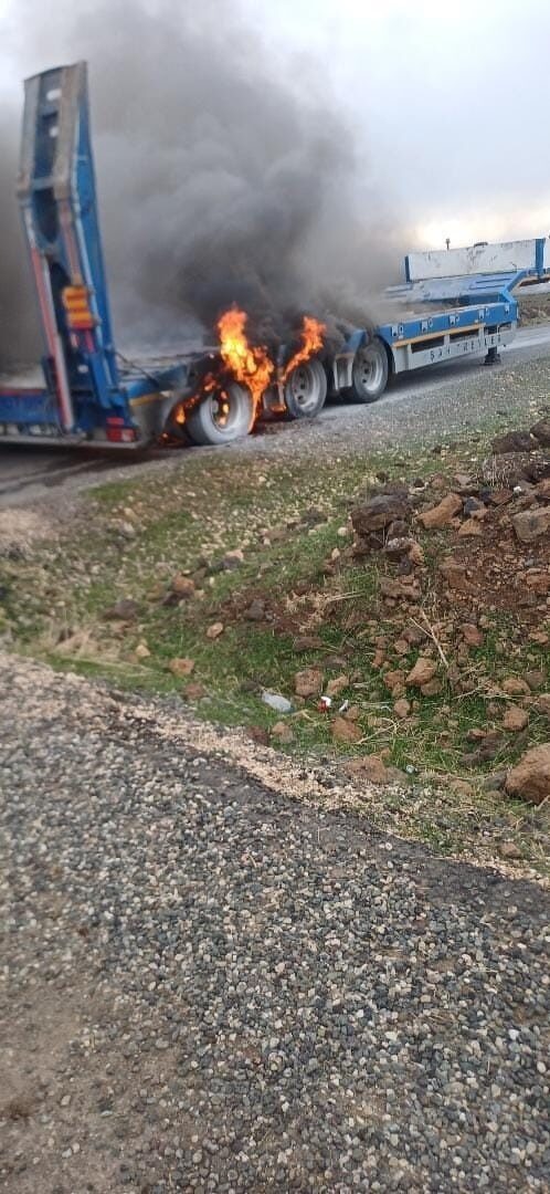Diyarbakır’ın Çınar ilçesinde bir tır, seyir halindeyken alev alev yanmaya başladı.
