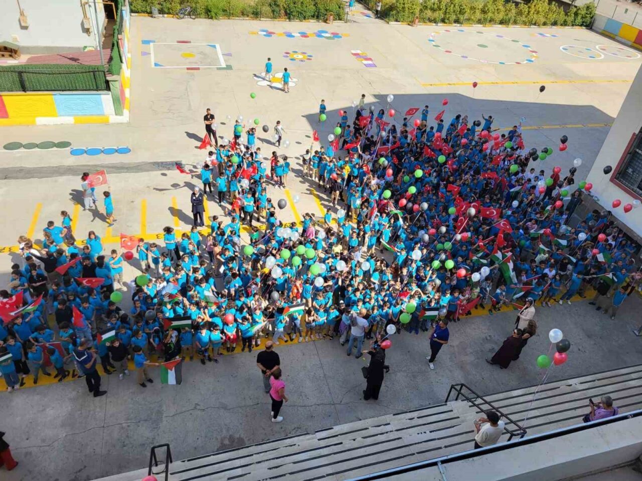 Okul bahçesinde, salonlar ve koridorlarda öğrenciler tarafından hazırlanan Filistin’e destek mesajları sergilendi. Çocukların çizdiği resimler ve yazdığı mektuplar, etkinlik süresince gösterildi. Aynı zamanda, gerçekleştirilen kısa film gösterimleriyle, Gazze’deki olaylar öğrencilere anlatılarak farkındalık oluşturuldu. Küçükler, hazırladıkları eserlerde Filistin’de yaşanan sorunlara dikkat çekerek desteklerini ifade ettiler.