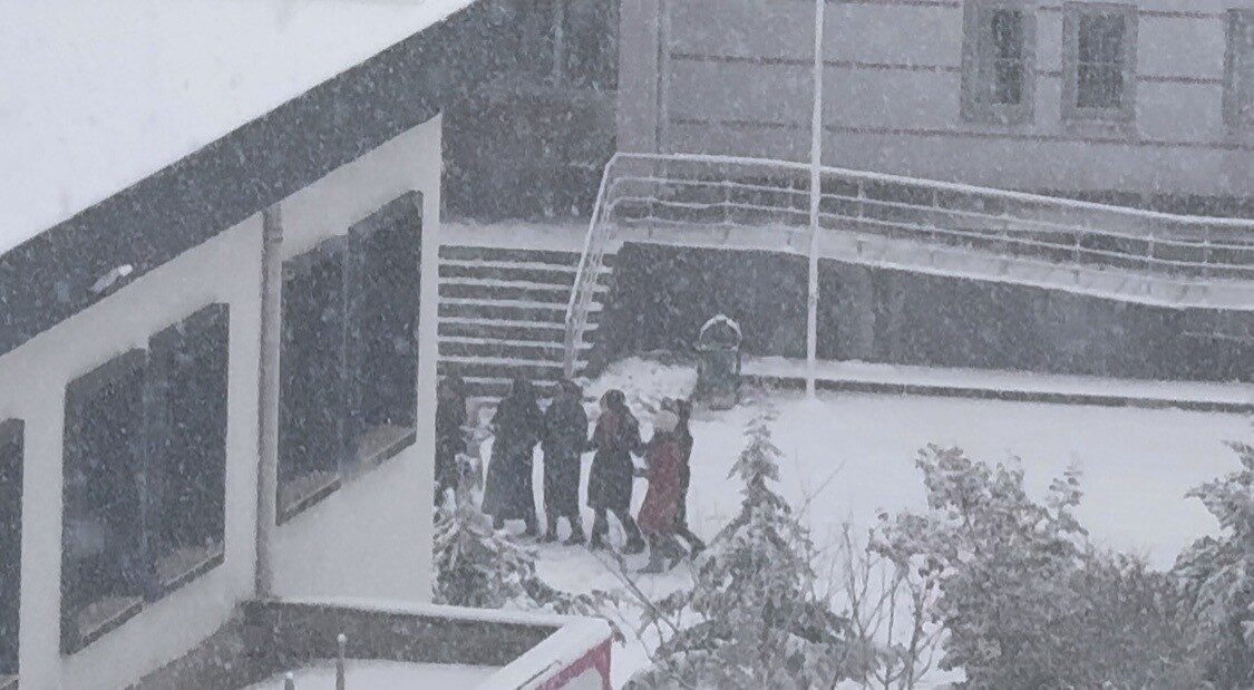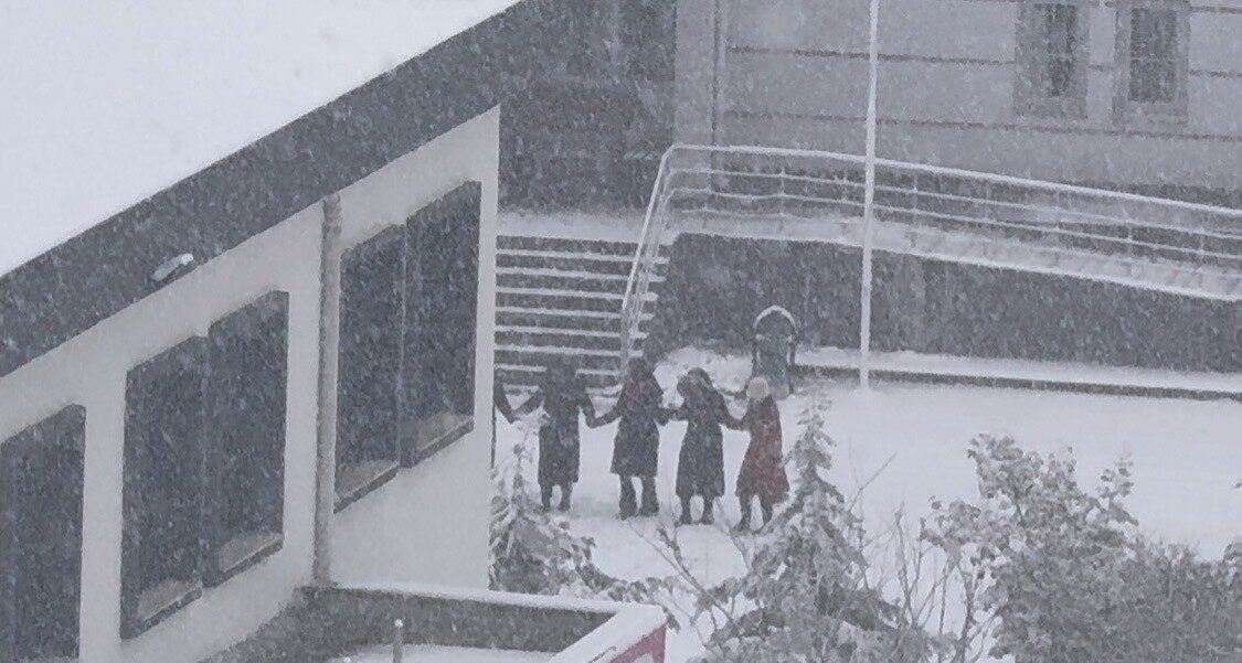Diyarbakır’daki okulda öğrenciler, kar yağışını müzik eşliğinde kutladı.