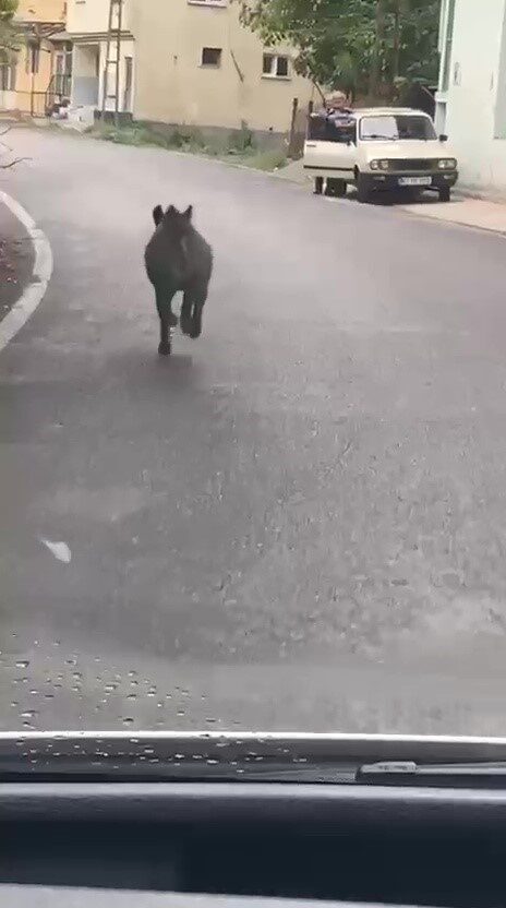 Zonguldak’ın Devrek ilçesine bağlı Yağmurca köyünde ilginç bir olay yaşandı. Bir sürücünün amatör kamerasıyla kaydedilen görüntülerde, hızlıca ilerleyen bir domuzun yaşlı bir adamın üzerine doğru koştuğu anlar ortaya çıktı.