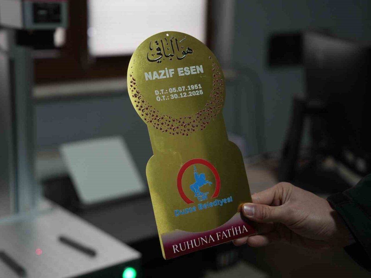 Düzce Belediyesi Mezarlıklar Müdürlüğü, defin hizmetlerinde yaşanan bir soruna kalıcı bir çözüm sağladı. Daha önce yalnızca ahşap mezar başlıkları kullanılırken, müdürlük bünyesine kazandırılan lazer baskı makinesi sayesinde metal plakalar üzerine baskı yapılmaya başlandı. Yeni uygulama ile birlikte tüm definlerde ahşap mezar başlıklarına; merhumun adı, soyadı, doğum ve ölüm tarihlerini içeren metal plakalar yerleştirilmeye başlandı. Bu sayede hem Mezarlık Bilgi Sistemi’nde yapılan fotoğraflandırmalarda kimlik bilgilerinin yer alması sağlanmış olmakta hem de cenaze yakınlarının mezarları daha kolay bulabilmesi mümkün kılmaktadır.