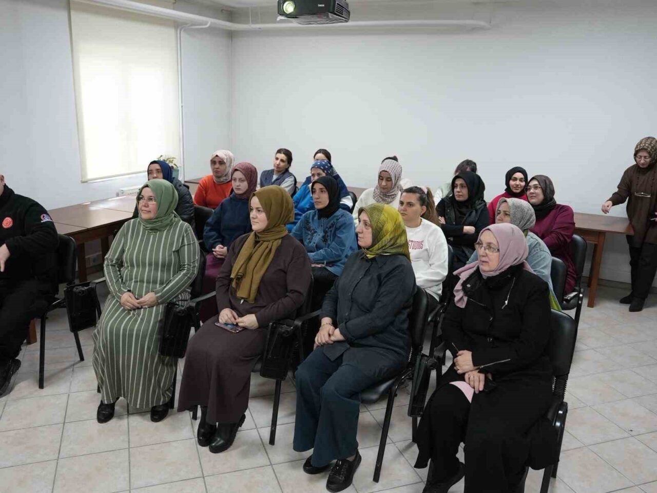 Eğitimin teorik bölümünde kursiyerlere; yangın türleri, yangın anında yapılması gereken doğru davranışlar ile yangın söndürme tüplerinin güvenli ve etkin kullanımı hakkında detaylı bilgiler aktarıldı.