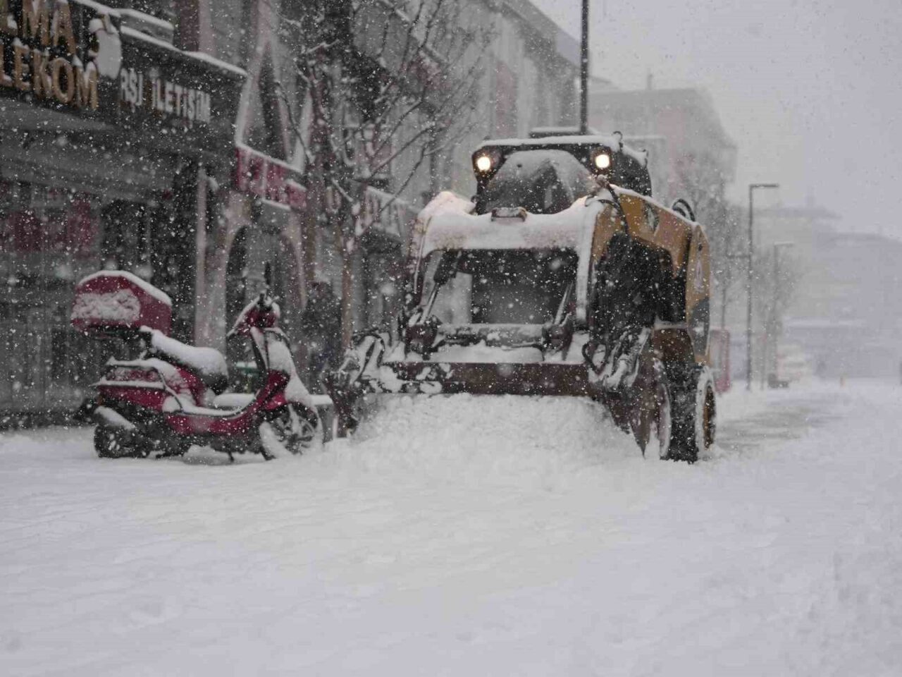 DÜZCE – Düzce’de yoğun kar yağışı nedeniyle belediye ekipleri, çalışmalarını kesintisiz sürdürüyor.