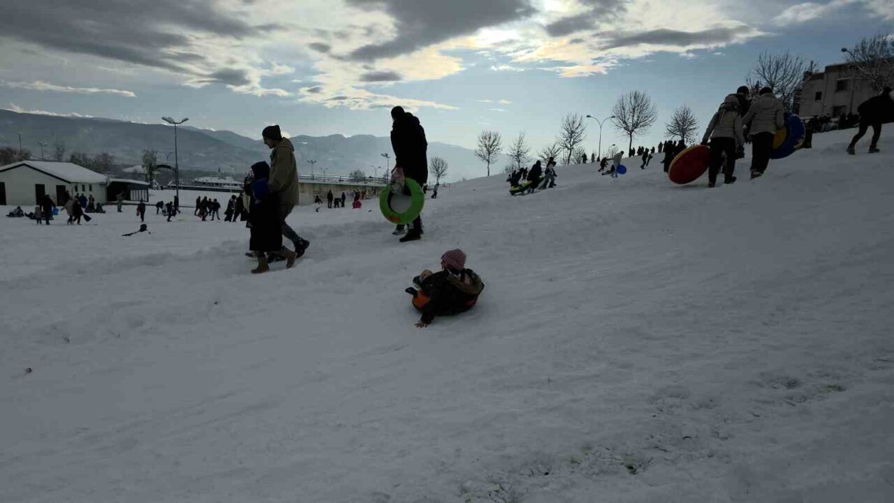 Tatili değerlendiren çocuklar ise “Karda oynamaya geldik. Çok eğleniyoruz” dediler.