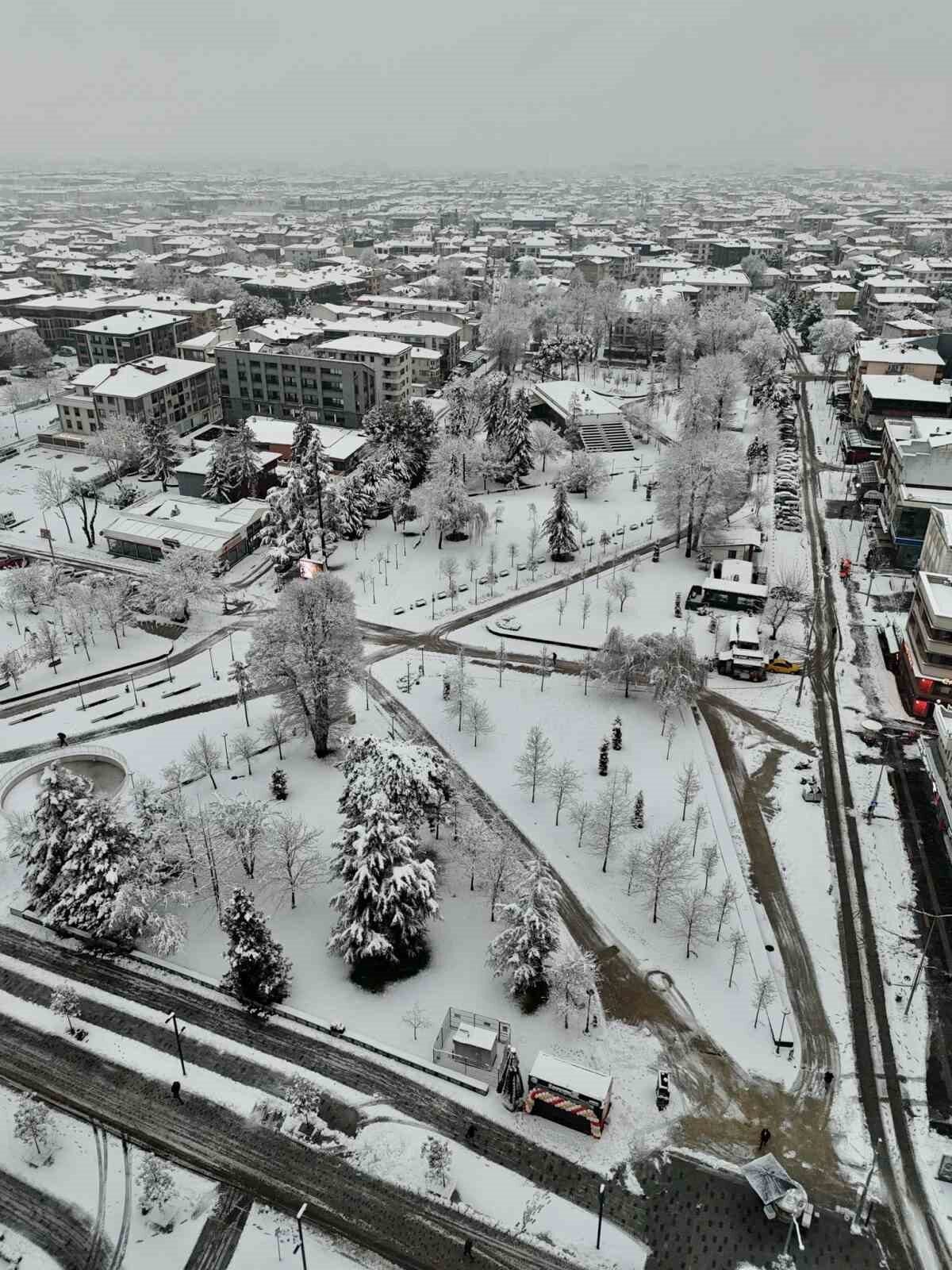 DÜZCE (İHA) – Düzce’de devam eden kar yağışı, kenti beyaz örtüyle kaplayarak görsel bir şölen sundu.