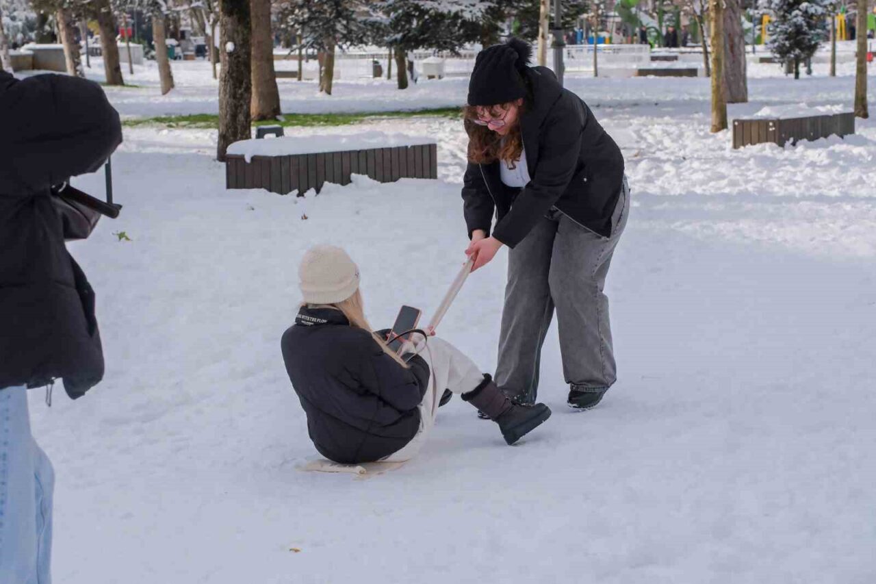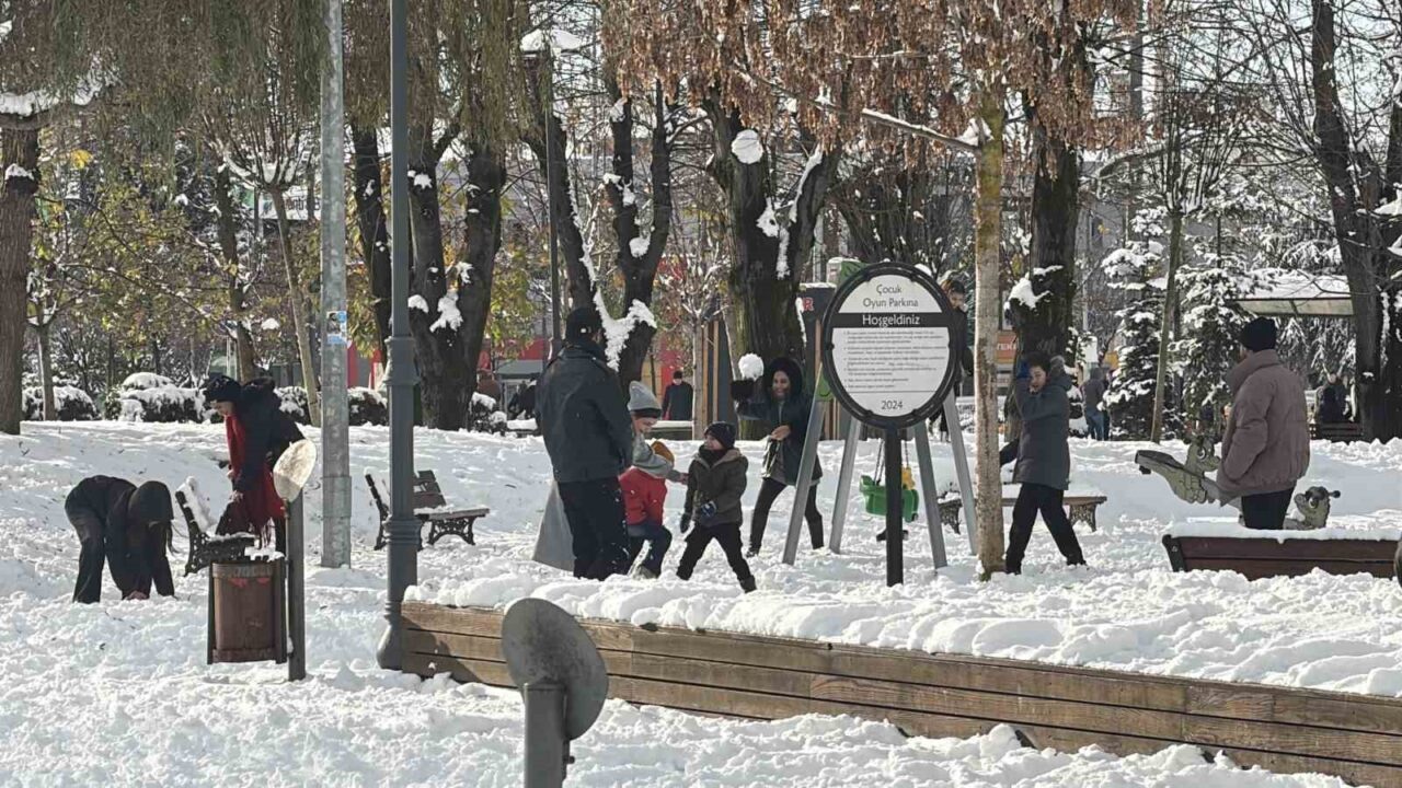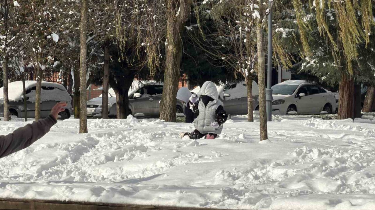 Düzce’de sabah saatlerinden itibaren etkili olan kar yağışı nedeniyle kar kalınlığı 20 santimetreye ulaştı. Yeni yıl sebebiyle tatil olan okullardaki öğrenciler de karın yağışına en çok sevinenler oldu. Millet bahçesinde bazıları kardan adam yaparak vakit geçirirken, bazıları ise kar topu oynadı. Çocuklar karın üzerinde yatarak eğlenceli anlar yaşarken, beyaz gelinliğini giyen şehir havadan drone ile görüntülendi.