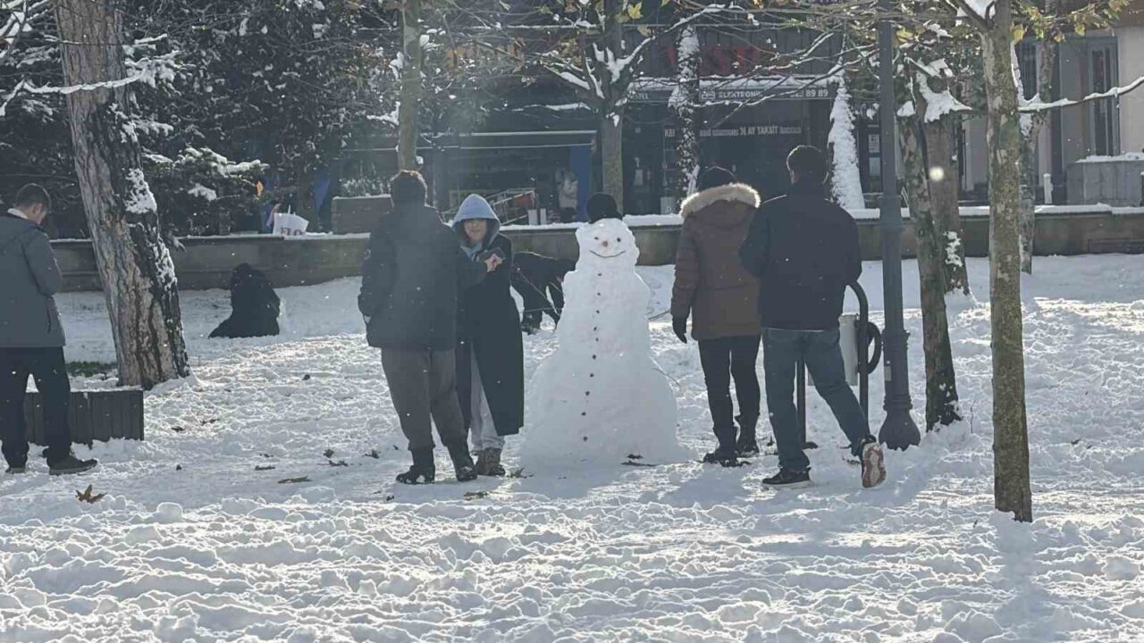 Düzce’de sabah saatlerinden itibaren etkili olan kar yağışı nedeniyle kar kalınlığı 20 santimetreye ulaştı. Yeni yıl sebebiyle tatil olan okullardaki öğrenciler de karın yağışına en çok sevinenler oldu. Millet bahçesinde bazıları kardan adam yaparak vakit geçirirken, bazıları ise kar topu oynadı. Çocuklar karın üzerinde yatarak eğlenceli anlar yaşarken, beyaz gelinliğini giyen şehir havadan drone ile görüntülendi.