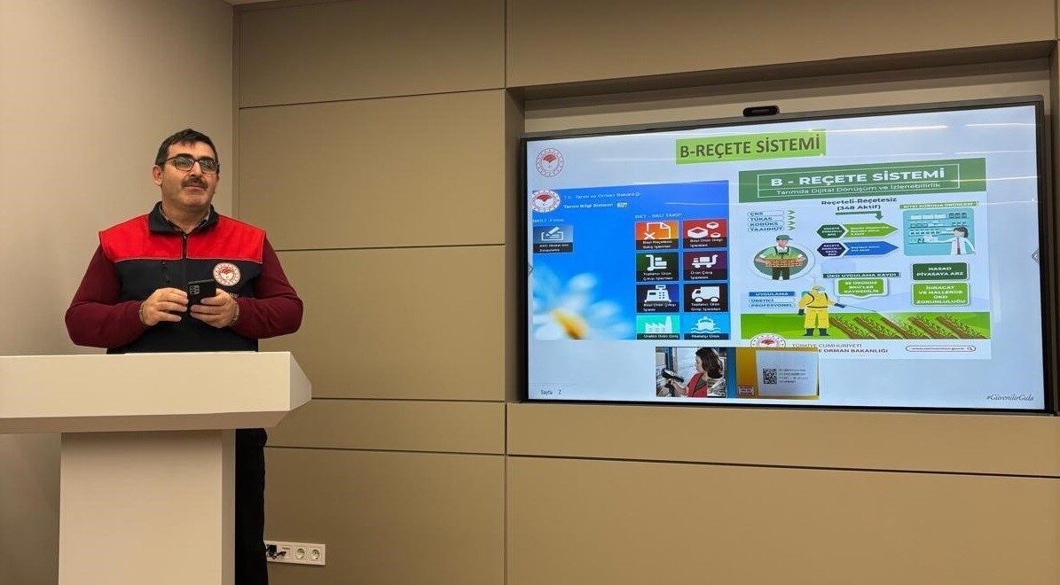 Eğitim çerçevesinde, 13 Aralık 2025 tarihli ve 33106 sayılı “Bitki Koruma Ürünleri Toptan ve Perakende Satılması ile Depolanması Hakkında Yönetmelik” hakkında bilgi verilirken, Düzce’de 1 Temmuz 2026 tarihinden itibaren yürürlüğe girecek B-Reçete Sisteminin işleyişi, amacı ve uygulama esasları detaylı bir şekilde ele alındı. Program kapsamında ayrıca, ilimizde tarımsal üretim açısından önemli bir tehdit oluşturan Kahverengi Kokarca ile mücadele yöntemleri, biyoteknik ve kimyasal mücadele esasları ile TARSİM tarım sigortalarının kapsamı, başvuru süreçleri ve üreticilere sağladığı avantajlar hakkında da bilgilendirme yapıldı.