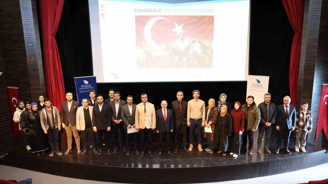 Düzce Üniversitesi Fen Edebiyat Fakültesi Tarih Bölümü tarafından düzenlenen ‘Çanakkale: Bir Destanın Öyküsü' adlı etkinlik, Çanakkale Zaferi'nin 111. yıl dönümüne özel olarak gerçekleştirildi. İstiklal Konferans Salonu'nda yapılan programa; Düzce Üniversitesi Rektörü Prof. Dr. Nedim Sözbir, Rektör Yardımcısı Prof. Dr. Emrah Evren Kara, akademik ile idari personel ve öğrenciler katılım gösterdi. Etkinlik, Düzce Üniversitesi Sanat Tasarım ve Mimarlık Fakültesi Müzik Bölümü Başkanı Prof. Dr. Haluk Yücel'in hazırladığı konserle başladı. Öğrenciler, bu özel günde anlam dolu eserleri seslendirirken, dinleyiciler duygu dolu anlar yaşadı. Konserin ardından ‘Çanakkale: Bir Destanın Öyküsü' adlı panel bölümüne geçildi.
