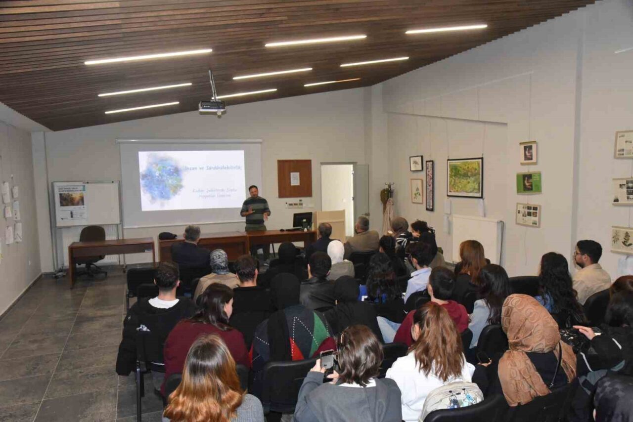 Düzce Üniversitesi’nin Süs ve Tıbbi Bitkiler Üretim Uygulama ve Araştırma Merkezi (DÜSTİBAM) ile Kariyer Geliştirme ve Mezun İzleme Uygulama Araştırma Merkezi’nin birlikte düzenlediği konferans, DÜSTİBAM Konferans Salonu’nda gerçekleştirildi. Etkinliğe Rektör Yardımcısı Prof. Dr. İlhan Genç, DÜSTİBAM Müdürü Prof. Dr. Necmi Aksoy, akademik kadro ve öğrenciler yoğun ilgi gösterdi. Açılış konuşmasını gerçekleştiren Prof. Dr. Aksoy, “Düzce’nin şehir planlamasında önemli bir figürü dinlemek bizim için büyük bir fırsat” açıklamasında bulundu.