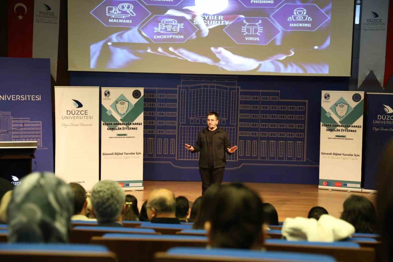 Düzce Üniversitesi Araştırma Dekanlığı’nın Sakarya Üniversitesi ile ortaklaşa düzenlediği “Siber Zorbalıkla Mücadelede Sen De Varsın” başlıklı eğitim programı, dijital dünya üzerinde çevrim içi güvenlik bilincini artırmayı hedefleyerek gerçekleştirildi.
