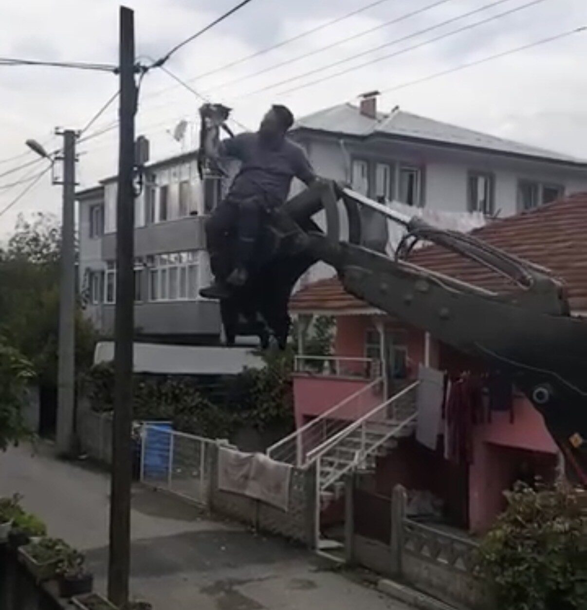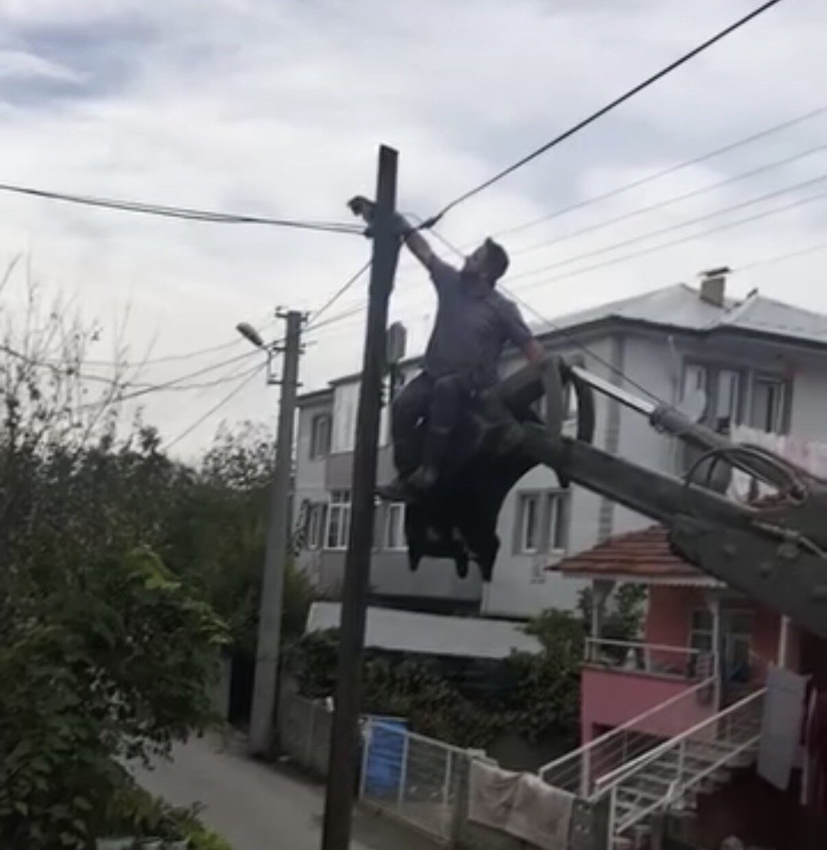 Ekipler, kepçeyi telefon direğine yakın bir noktaya getirdi ancak kedinin aşağı inmemesi nedeniyle bir çalışan, kepçenin kovasına binerek kedinin bulunduğu yüksekliğe ulaştı. Burada, personel dikkatlice kediyi alarak güvenli bir şekilde sokağa indirmeyi başardı.