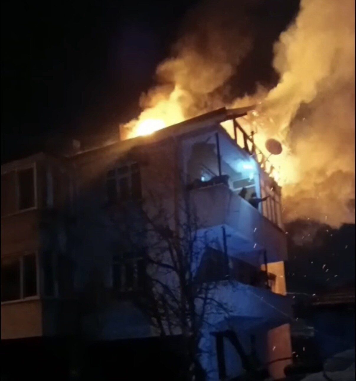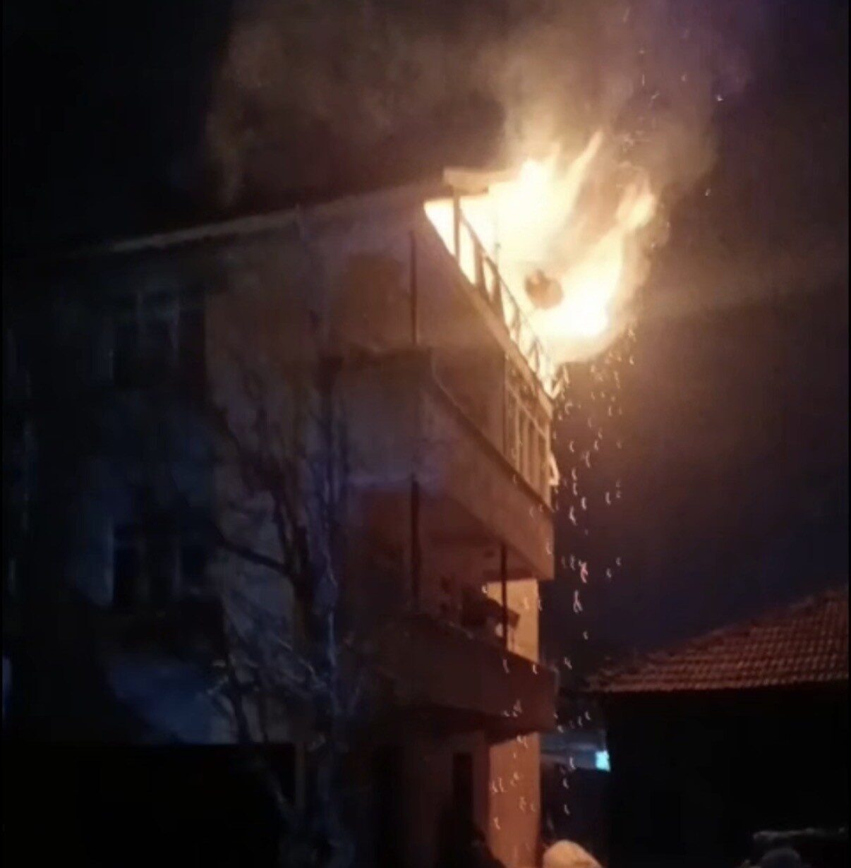 Düzce’nin Kuyudüzü köyünde 3 katlı binanın çatısında yangın çıktı