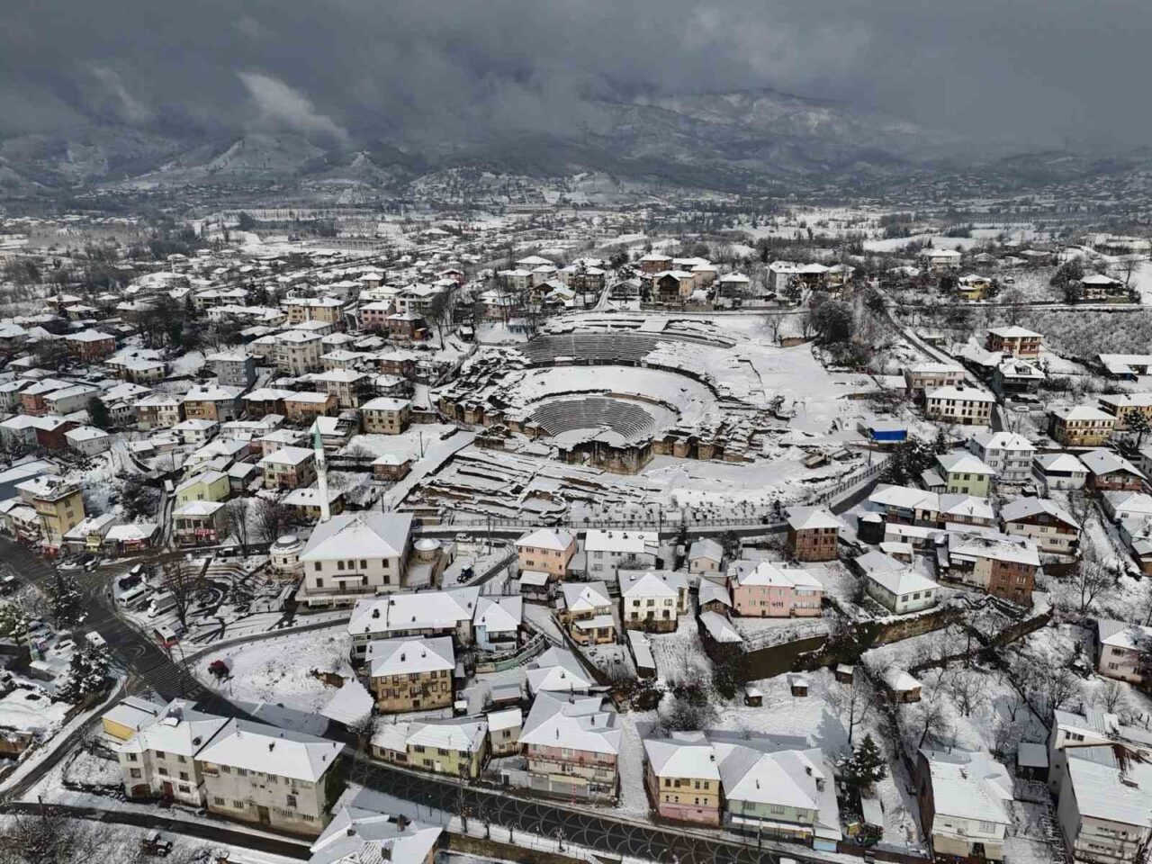 DÜZCE (İHA) – Düzce’nin tarihi ve kültürel mirası arasında önemli bir yer tutan Prusias Ad Hypium Antik Kenti, etkili olan kar yağışının ardından ortaya çıkan görüntüsüyle dikkatleri üzerine çekti.