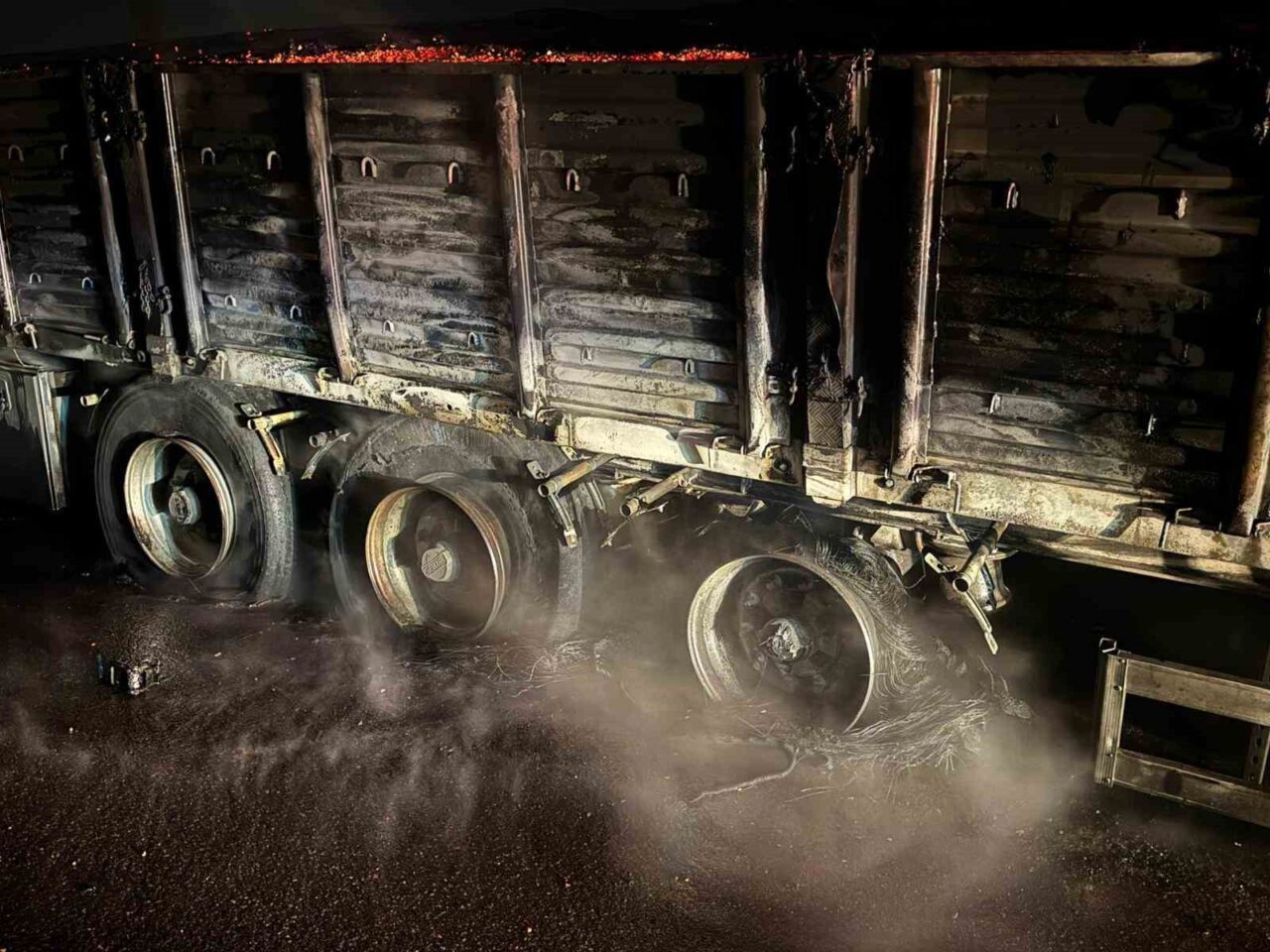 Osmaniye’nin Düziçi ilçesinde, gece saatlerinde bir mısır yüklü tırın dorsesinde meydana gelen yangın, itfaiye ekiplerinin hızlı müdahalesiyle kontrol altına alındı.