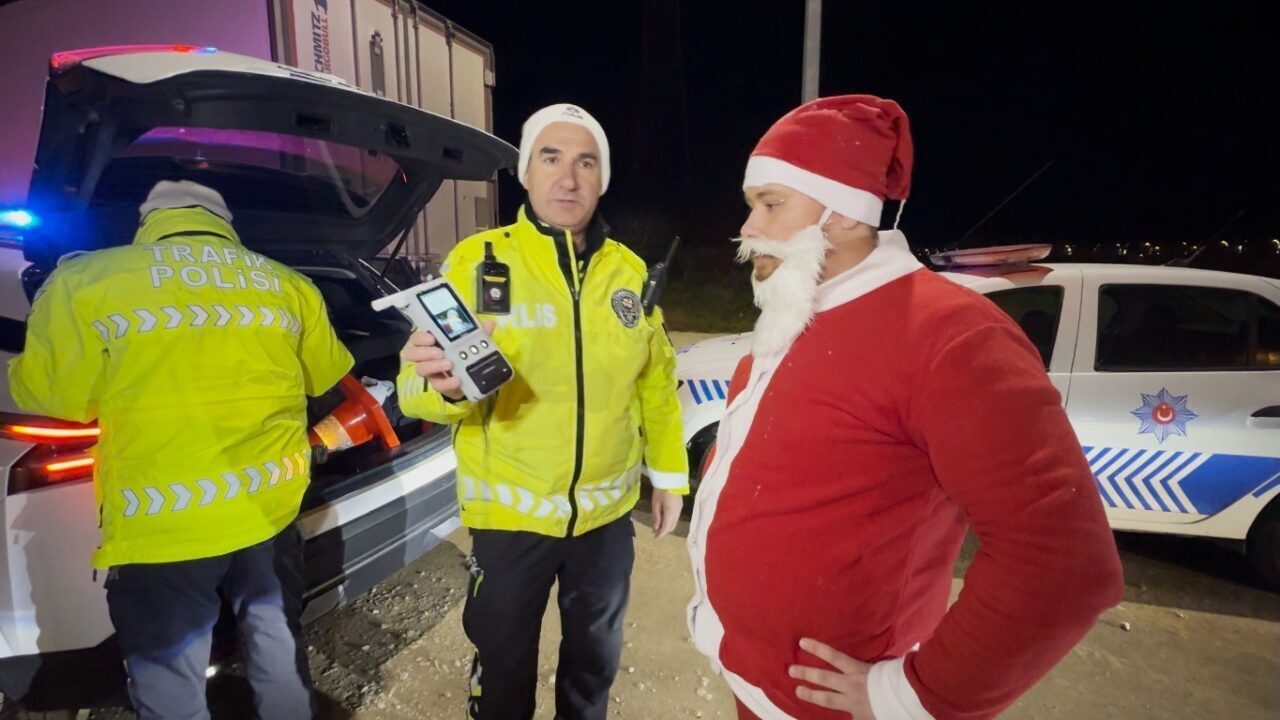 Diğer yandan Edirne’de gerçekleştirilen trafik uygulamalarında, Noel Baba kostümüyle direksiyon başına geçen sürücü Mustafa Zobar denetimde durdurulunca eğlenceli anlar yaşandı.