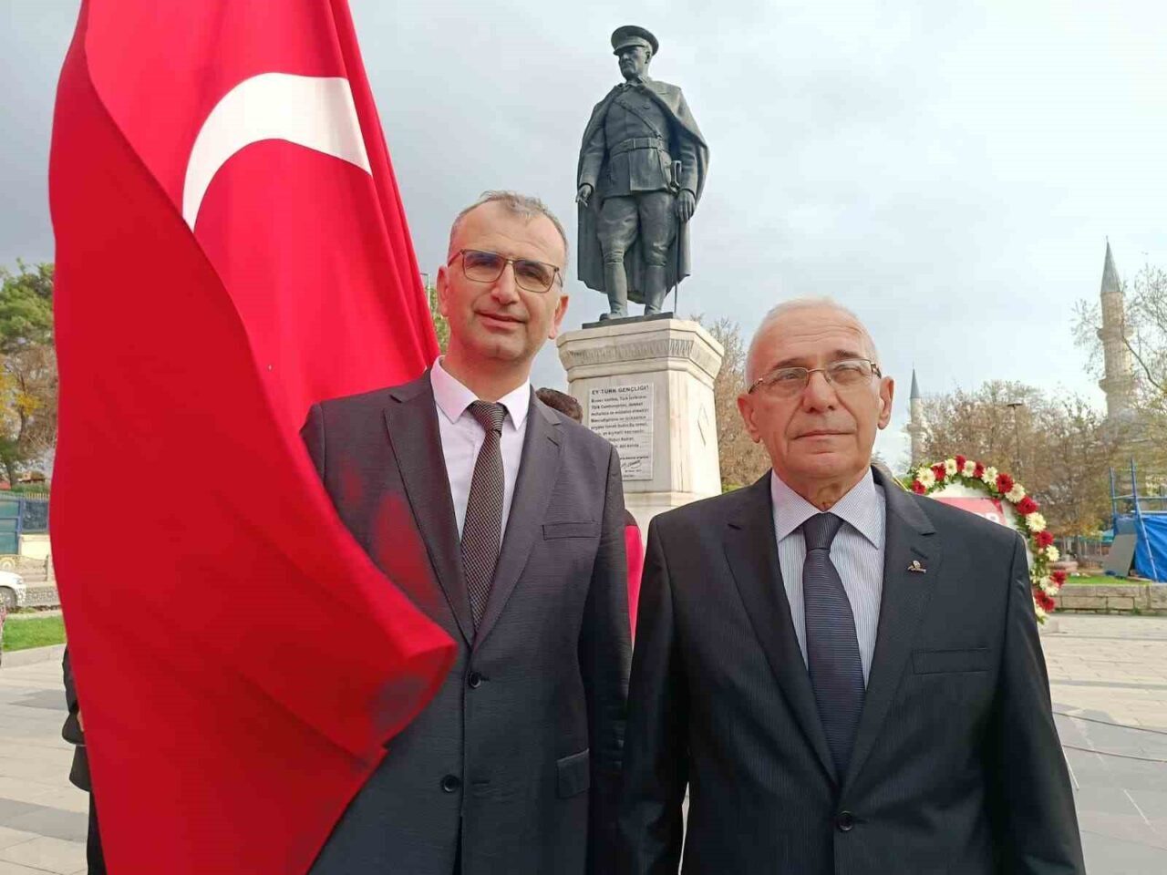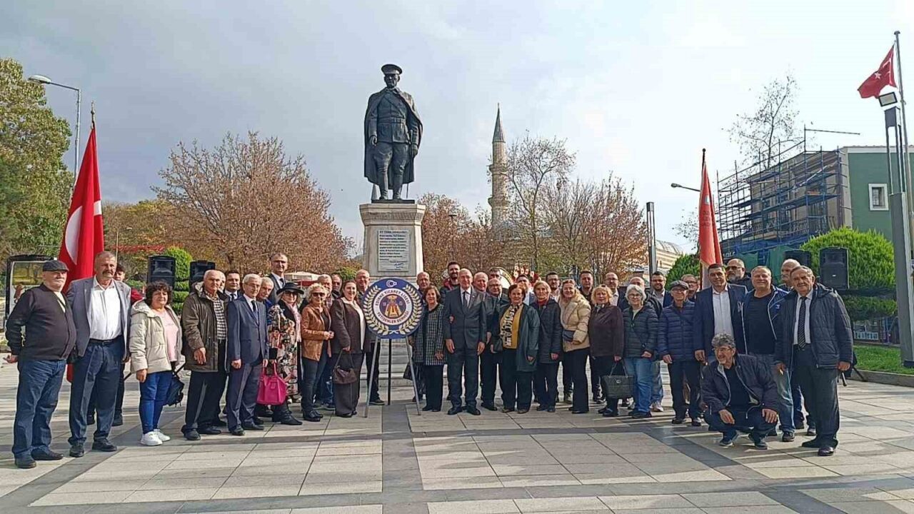 Atatürk heykeli önünde düzenlenen anma töreninde, katılımcılar çelenk sunumunun ardından belediye bandosunun eşliğinde saygı duruşunda bulunarak İstiklal Marşı’nı okudu.
