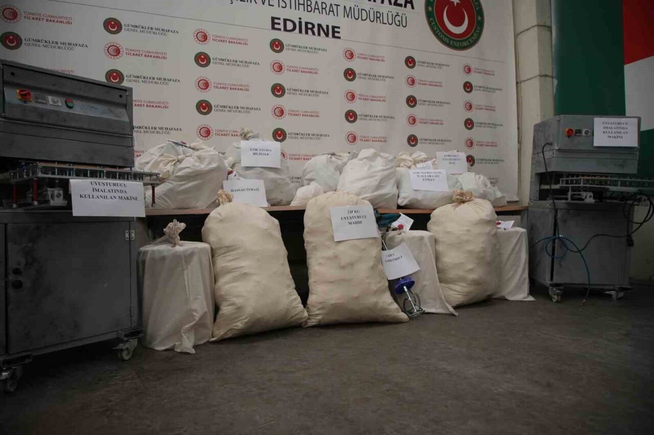 Edirne Gümrük Muhafaza ekiplerince yürütülen çalışmalar kapsamında düzenlenen uyuşturucu operasyonunda, bir şüphelinin evinin uyuşturucu imalathanesine çevrildiği belirlendi. Operasyonda toplam 117 kilo 434 gram uyuşturucu madde ile çok sayıda üretim ve satış malzemesi ele geçirilirken, 5 şüpheli gözaltına alındı.