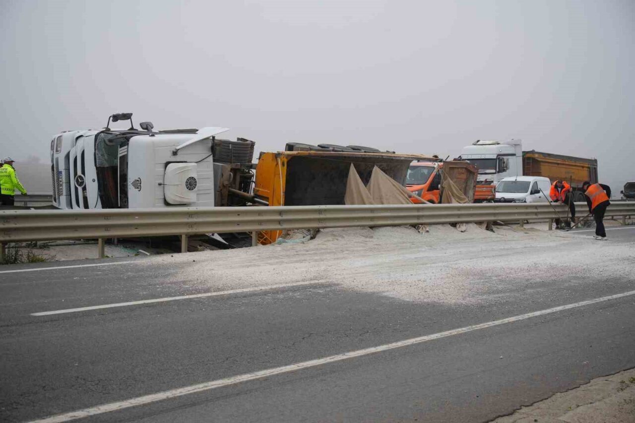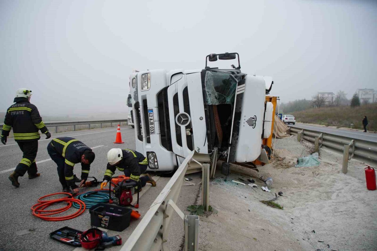 Olayın detaylarına göre, M.D. isimli sürücünün kontrolündeki 42 ABJ 033 plakalı hafriyat tırı, Edirne-Havsa güzergahında seyir halindeyken direksiyon hakimiyetini kaybetti. Tır, ani bir manevra ile karşı yönden gelen araca çarpmamak için yan yattı ve dorsedeki kumlar yola saçıldı.