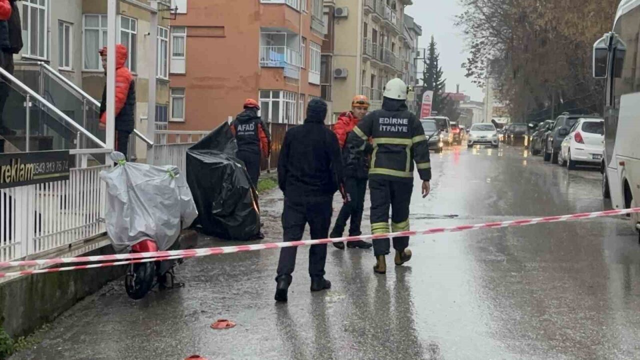 Edirne’de sağanak yağış sonrası bir binanın istinat duvarı çöktü; iki evin balkonunda hasar oluştu.