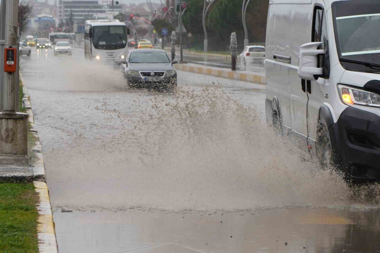 Edirne’de etkili olan sağanak yağış, kent genelinde yaşamı olumsuz etkiledi. Yağış nedeniyle bazı cadde ve sokaklarda su birikintileri meydana geldi. Özellikle yağışın etkili olduğu bölgelerde sürücüler ilerlemekte zorlanırken, yolun karşısına geçmeye çalışan yayalar da sıkıntılı anlar yaşadı. Bazı noktalarda araçlar yavaşlamak zorunda kalırken, yayalar su birikintilerinin arasından geçmeye çalıştı.