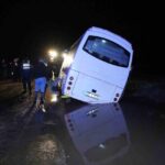 Edirne’de şiddetli sağanağın etkisiyle kontrolden çıkan minibüs sulama kanalına düştü