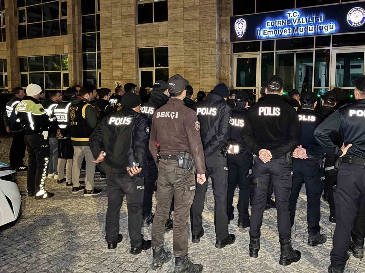 Edirne’de gerçekleştirilen geniş kapsamlı asayiş denetiminde, çok sayıda polis ve gece bekçisi görev aldı. Edirne İl Emniyet Müdürlüğü tarafından düzenlenen bu operasyonda ekiplerin denetim noktasına topluca gitmesi, havadan görüntülerle kaydedildi.