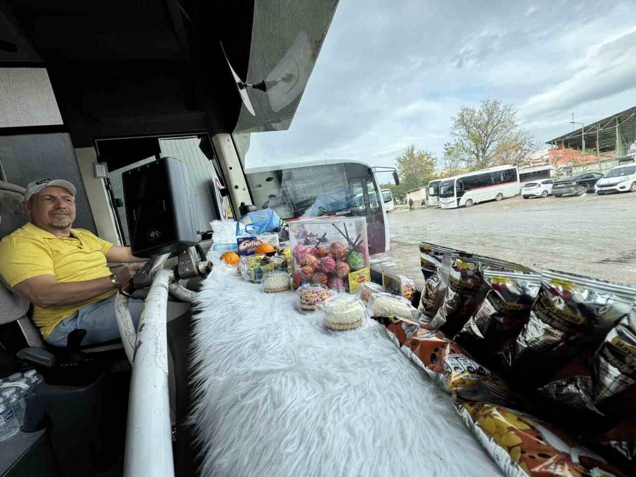 Minibüsünün ön kısmını neredeyse bir dükkan haline getiren Coşkun, özellikle çocukların gönlünde taht kurarak “en sevilen şoför” unvanını kazandı.