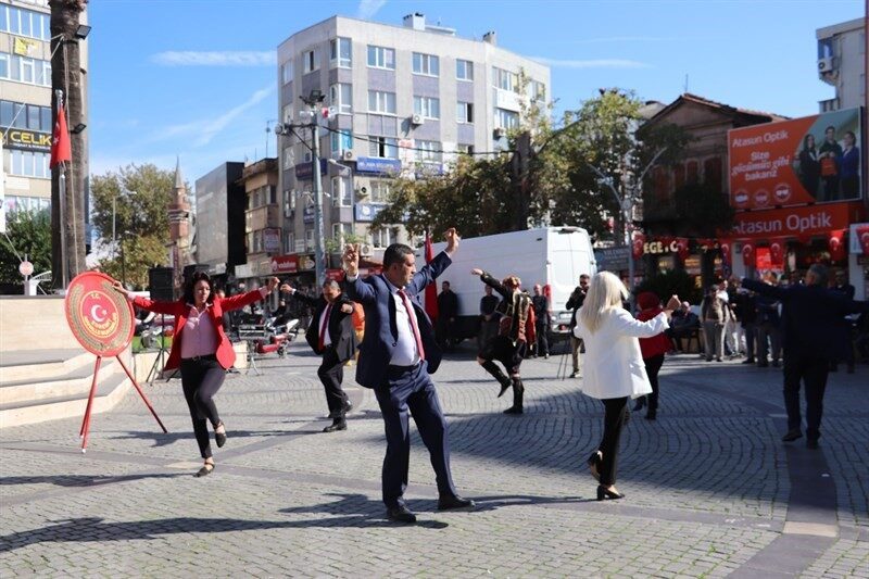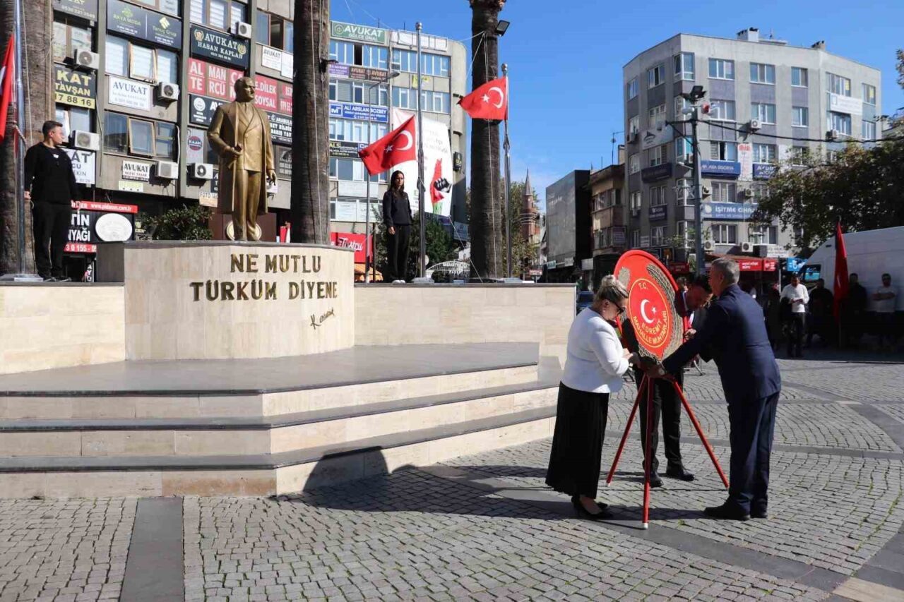 Etkinlik, Cumhuriyet Meydanı’nda Muhtarlar Derneği tarafından organize edilen bir törenle başladı. Törenin ilk aşamasında, Atatürk Anıtı’na çelenk bırakıldı. Ardından saygı duruşunda bulunarak İstiklal Marşı okundu.
