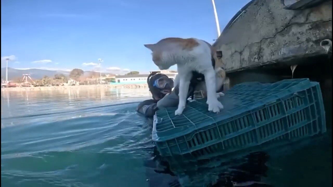 Balıkesir’in Edremit ilçesinde, denizin kenarındaki iskelenin altında mahsur kalan kedi, Sahil Güvenlik Komutanlığı’na bağlı balık adamların gerçekleştirdiği operasyonla kurtarıldı. O anlar balık adamların kafa kameralarına saniye saniye yansıdı.